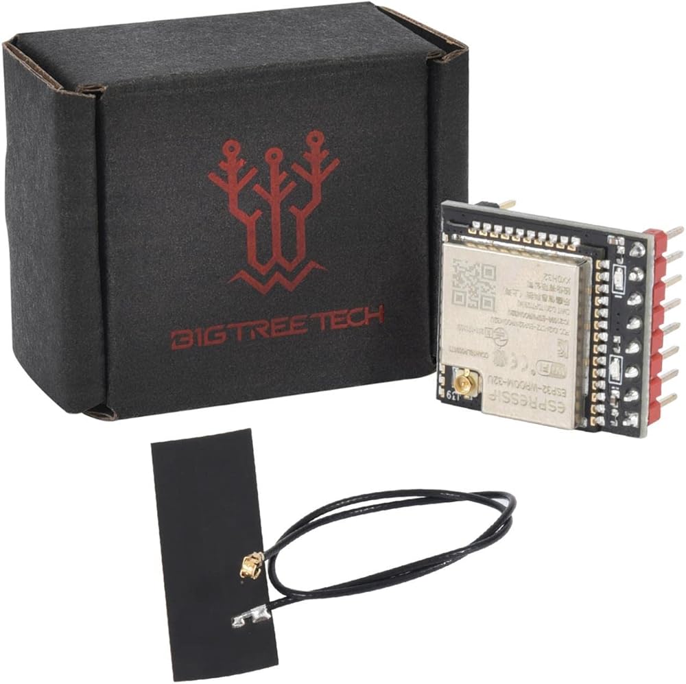 BIGTREETECH ESP32U is universal Wi-Fi+BT+BLE MCU modules, powerful and versatile, which targets at a wide variety of applications, ranging from low-power sensor networks to the most demanding tasks, such as voice encoding, music streaming and MP3 decoding. ESP32E mode adopts PCB onboard antenna, and is configured with 4 MB SPI flash. Features:MCU:Built-in ESP32-D0WD-V3 chip, Xtensa dual-core 32Bit LX6 microprocessor supporting clock frequencies up to 240 MHzRate 448 KBytes ROM for booting and core functions 520 KBytes on-chip SRAM 16 KB RTC SRAM WI-FI 802.11b/g/n (802.11n data rates up to 150 Mbps) Supports A-MPDU and A-MSDU aggregation Supports 0.4 µs guard interval Working channel center frequency range: 2412 ~ 2484 MHz Bluetooth Bluetooth V4.2 BR/EDR and Bluetooth LE standards Class-1, class-2 and class-3 transmitters AFH CVSD and SBCHardware Module interface: SD card, UART, SPI, SDIO, I2C,LED PWM, Motor PWM, I2S, IR, Pulse Counter,GPIO, capacitive touch sensor, ADC, DAC, 2-wire steam Vehicle Interface 40 MHz crystal 4 MB SPI flash Operating voltage/supply voltage: 3.0 ~ 3.6 V Recommended operating temperature range: –40 ~ 85 °C ESP32 has 5 strapping pins MTDI GPIO0 GPIO2 > MTDO
