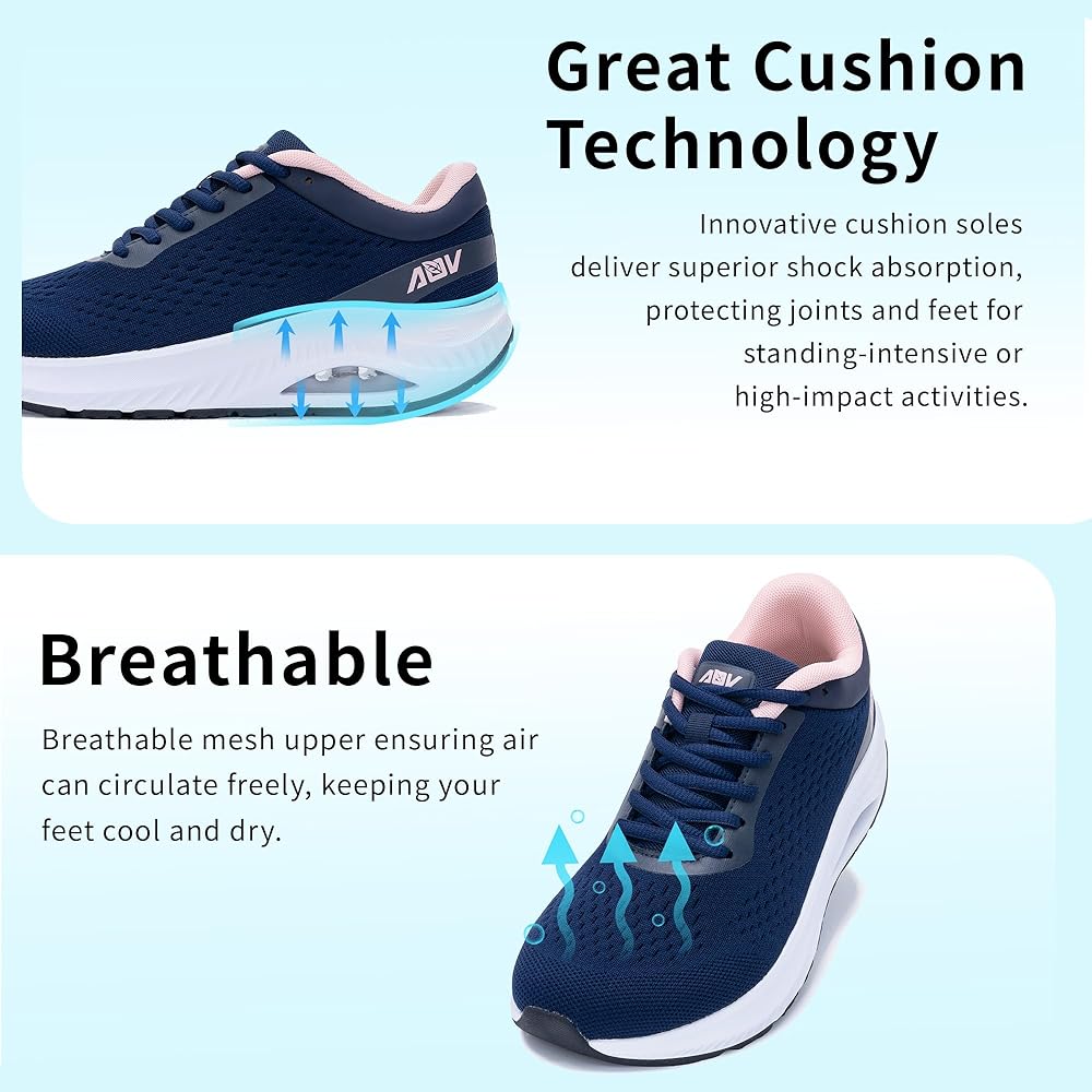 • 【جيد التهوية وممتص للصدمات】- يتميز حذاء الهواء النسائي الداعم لقوس القدم بجزء علوي شبكي مسامي يتمتع بالقدر المناسب من التهوية للحفاظ على قدميك باردة وجافة. يوفر الكعب المبطن بالهواء توسيدًا جيدًا لتقليل التأثير على المفاصل وتحسين الراحة أثناء الاستخدام.