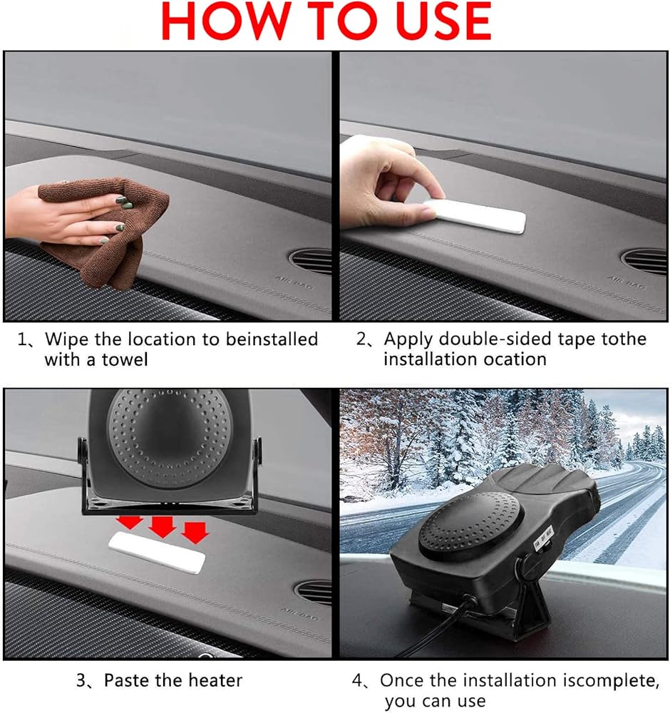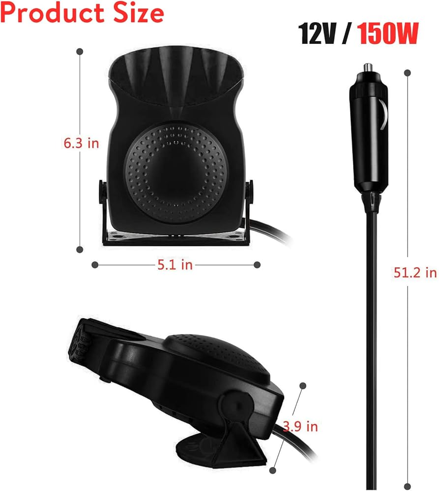 【نطاق واسع من الاستخدامات】سخان سيارة مناسب للسيارات الشتوية والتخييم والسفر والدفء. محمولة وفعالة، ويمكن تسخينها بسرعة وسهولة. إنه مصمم لتنظيف الصقيع والضباب والضباب بسرعة، وحتى إزالة الثلج على الزجاج الأمامي لسيارتك، مما يحافظ على رؤيتك أثناء القيادة بوضوح ويضمن سلامة قيادتك.