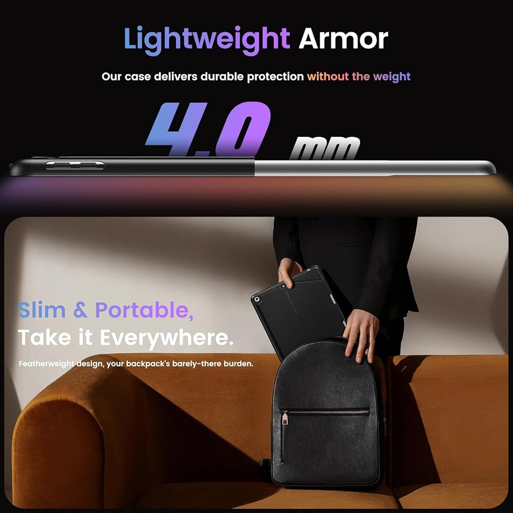 🎡【تصميم خفيف الوزن】تم تصميم حافظة iPad 10.2 هذه لتوفير سهولة الحمل القصوى، وهي خفيفة الوزن بشكل استثنائي، مما يضمن أن حمل جهازك دائمًا خالي من المتاعب، حتى أثناء التنقل.