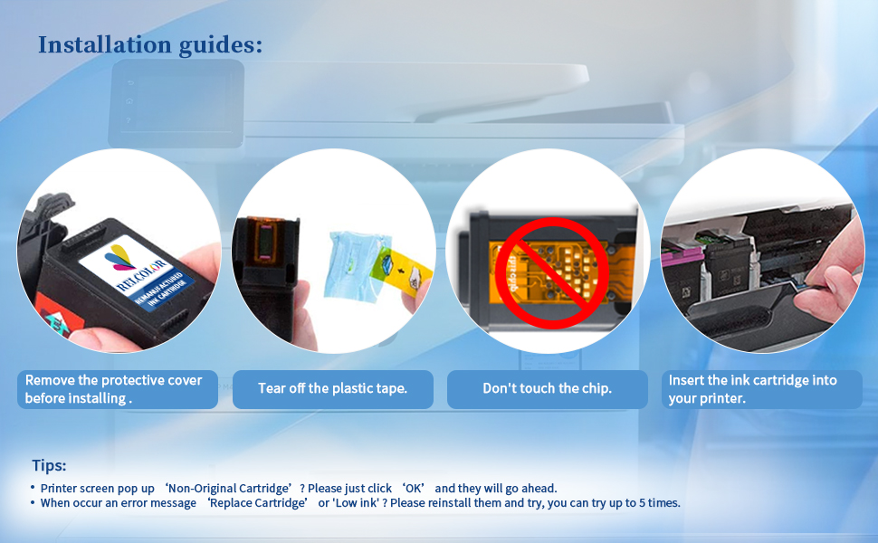 • تم تصميم جميع خراطيش Relcolor خصيصًا لطابعات HP، حيث تم تصميمها باستخدام أحدث الرقائق المطورة، ويتم حظر المزيد من حالات عدم التوافق