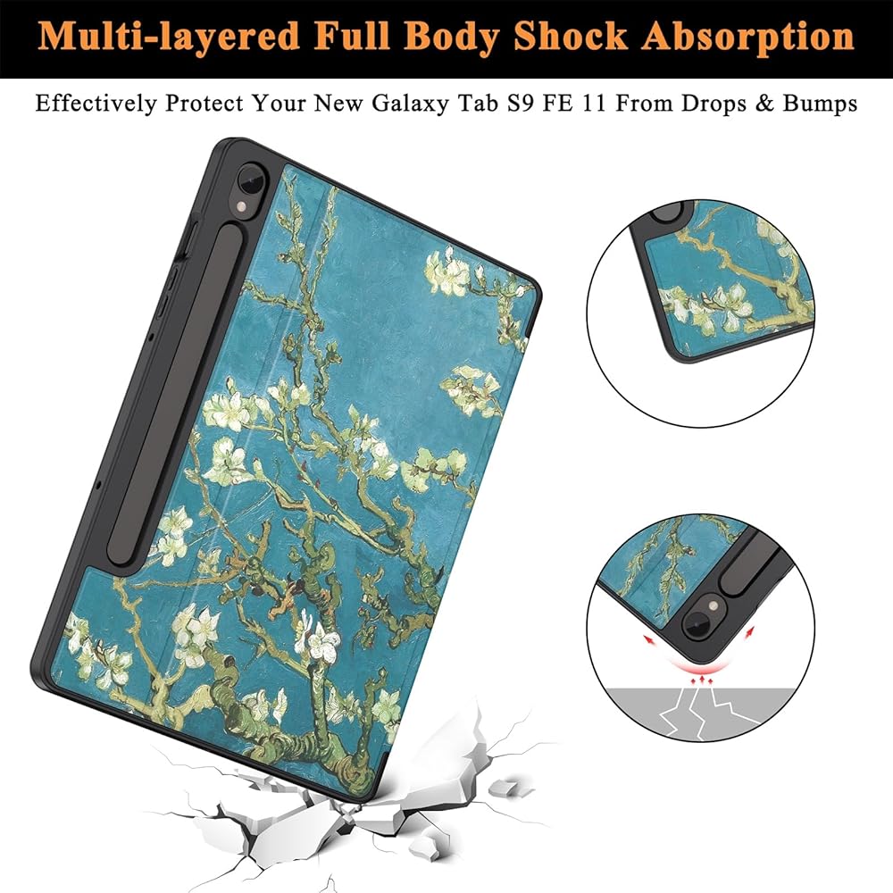 حافظة Soke لهاتف Samsung Galaxy Tab S9 /S9 FE 5G 2023 - حافظة قابلة للطي بحامل مقاوم للصدمات، زوايا متعددة الرؤية، غطاء خلفي ناعم من مادة TPU لجهاز Galaxy Tab S9 FE 10.9 بوصة/S9 11 بوصة، زهر