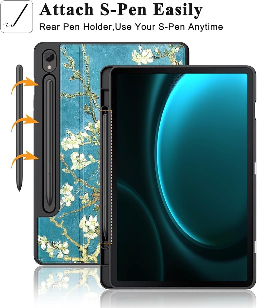 • مصمم للحماية الكاملة -- غلاف خلفي ناعم من مادة TPU يحمي جهازك Galaxy Tab S9 11 بوصة وS9 FE 10.9 بوصة الجديد من الصدمات والسقوط والتأثيرات. مغناطيس يؤمن إغلاق العلبة.