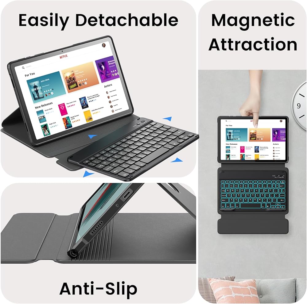متعددة الاستخدامات بشكل مريح: توفر حافظة لوحة المفاتيح Samsung Galaxy Tab A9 Plus راحة لا مثيل لها ومتعددة الوظائف، وتبديل بسهولة بين أوضاع الكمبيوتر المحمول والكمبيوتر اللوحي حسب الحاجة