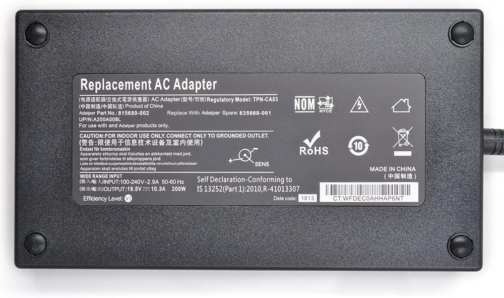 COMPATIBLE MODELS: Compatible with HP ADP-200HB B, W2F75AA, TPN-DA10, TPN-LA21, L00818-850, L00895-003, L73385-001, 815680-002, 835888-001, Compatible with HP Omen Gaming Laptop Charger 200w: for HP Omen 15 17 series HP ZBook 17 15 G3 G4 G5 G6 G7 Series.