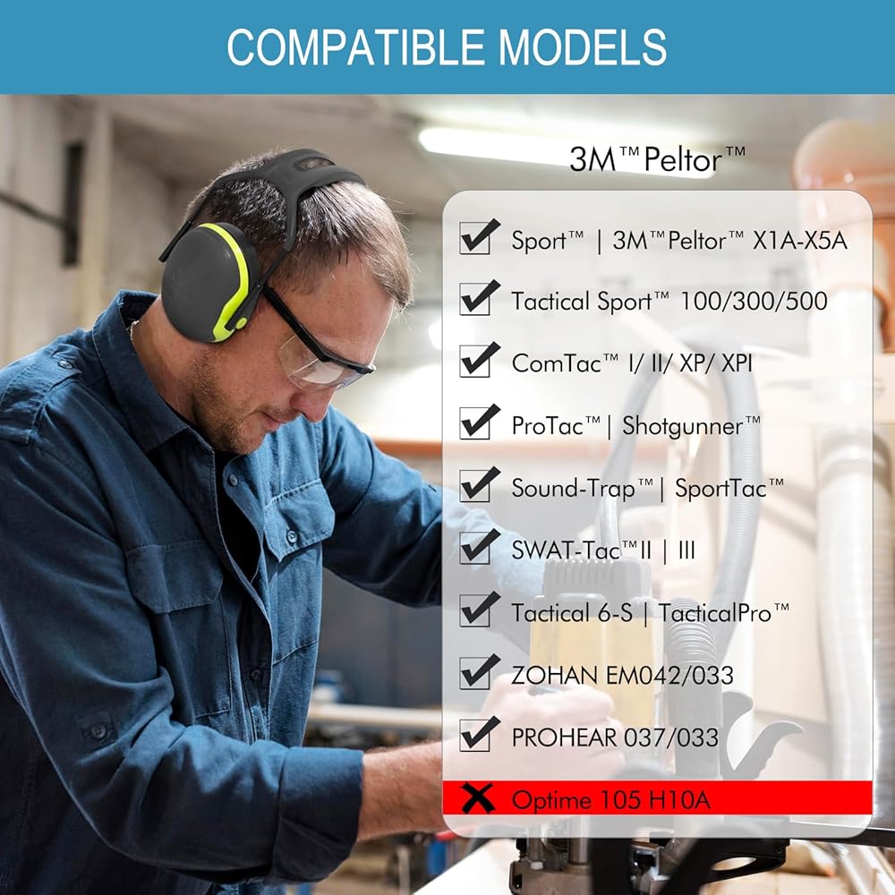 نماذج متوافقة: هذه وسائد أذن هلامية مطورة يمكن استخدامها على مجموعة واسعة من سماعات الرأس، ZOHAN EM042/033، سماعات PROHEAR 037/033، التكتيكية Sport 100/ 300/ 500، ComTac II/ III/ XP/ XPI، ProTac|Shotgunner ، Sound-Trap|SportTac، SWAT-TacII/ III، التكتيكية 6-S|TacticalPro. (تتناسب مع واقيات السمع 3M WorkTunes، ولكنها لا تناسب أغطية الأذن Optime 105 H10A)