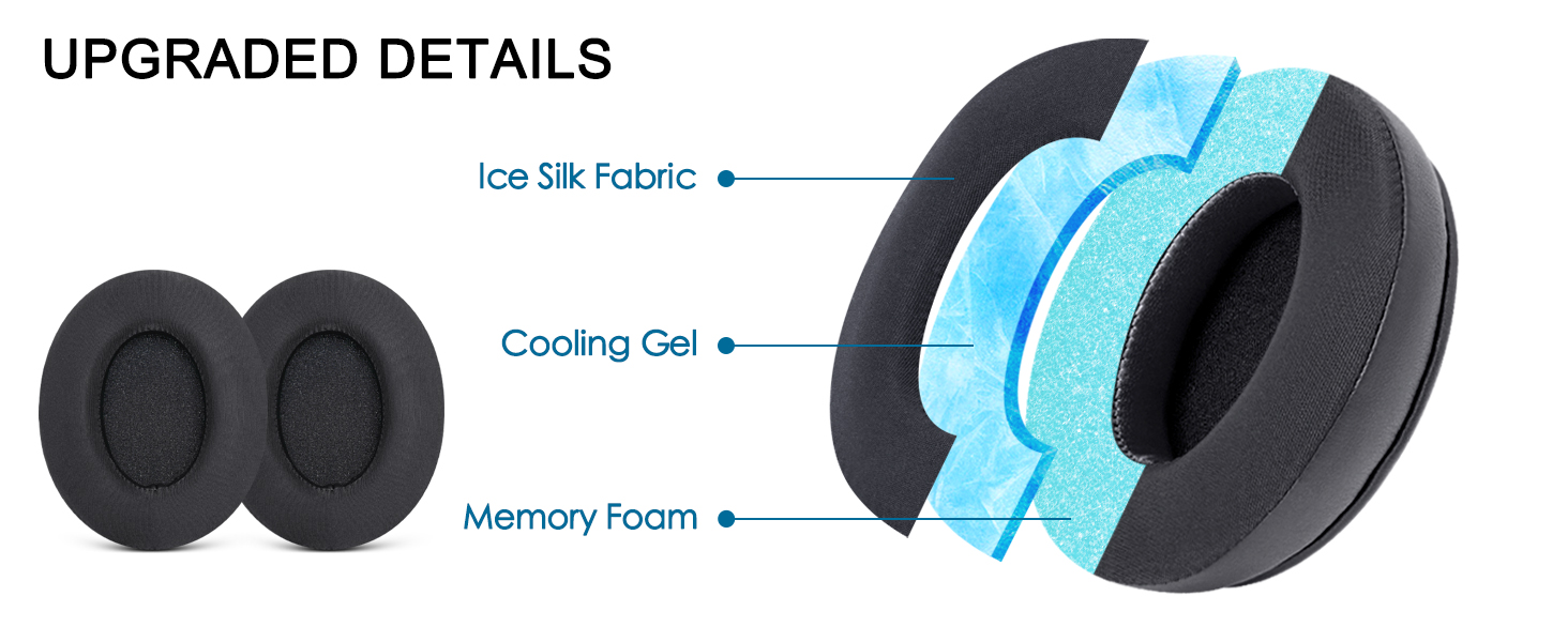 ICE SILK Fabric: Perfectly match with cooling gel, soft and ice-feeling, keep your earssweat less and longer lifespan of earpads.