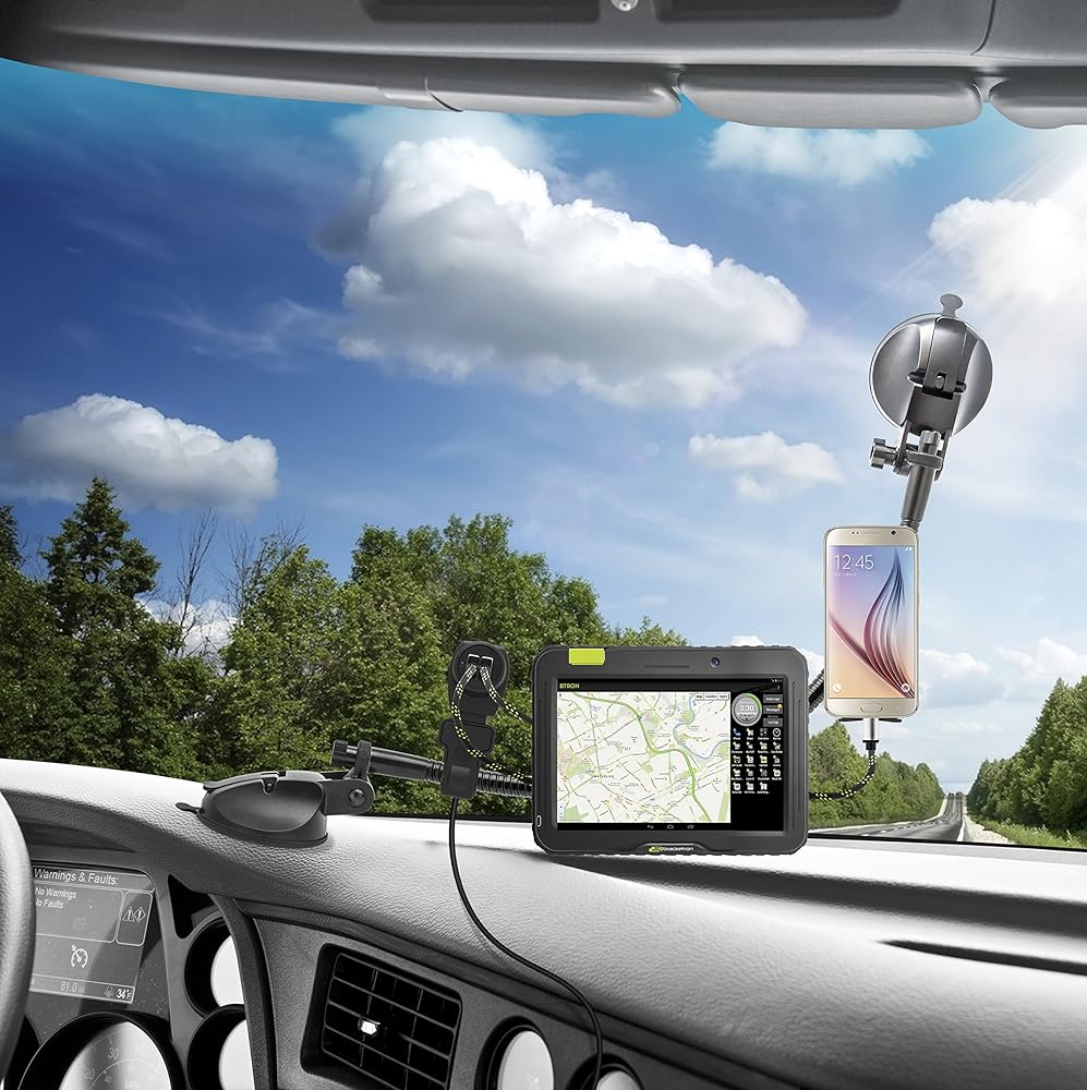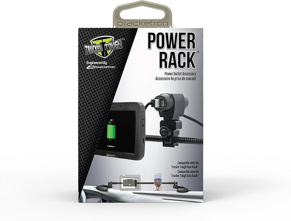 ملحق رف طاقة بثلاثة منافذ من Trucker Tough لحامل التروس - 3 منافذ طاقة مع منفذي USB ومنفذ مساعد 12 فولت، وسلك طاقة 9 أقدام، وكابل USB صغير وكابل USB صغير متضمن TT2-861-2