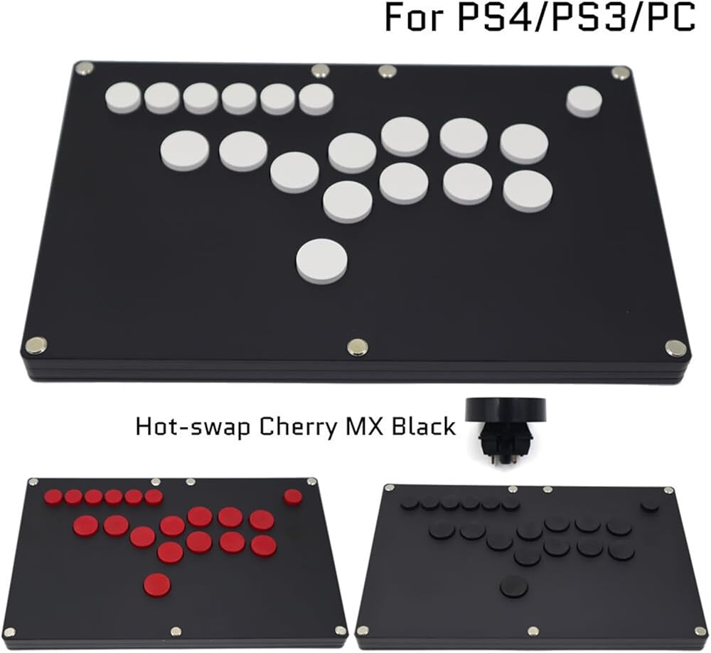 LOKORI B1-PS-B عصا تحكم رفيعة للغاية على شكل جميع الأزرار، عصا تحكم في الألعاب لجهاز PS4/PS3/PC Hot-Swap Cherry MX أسود (اللون: أزرار سوداء)