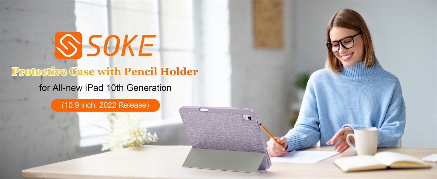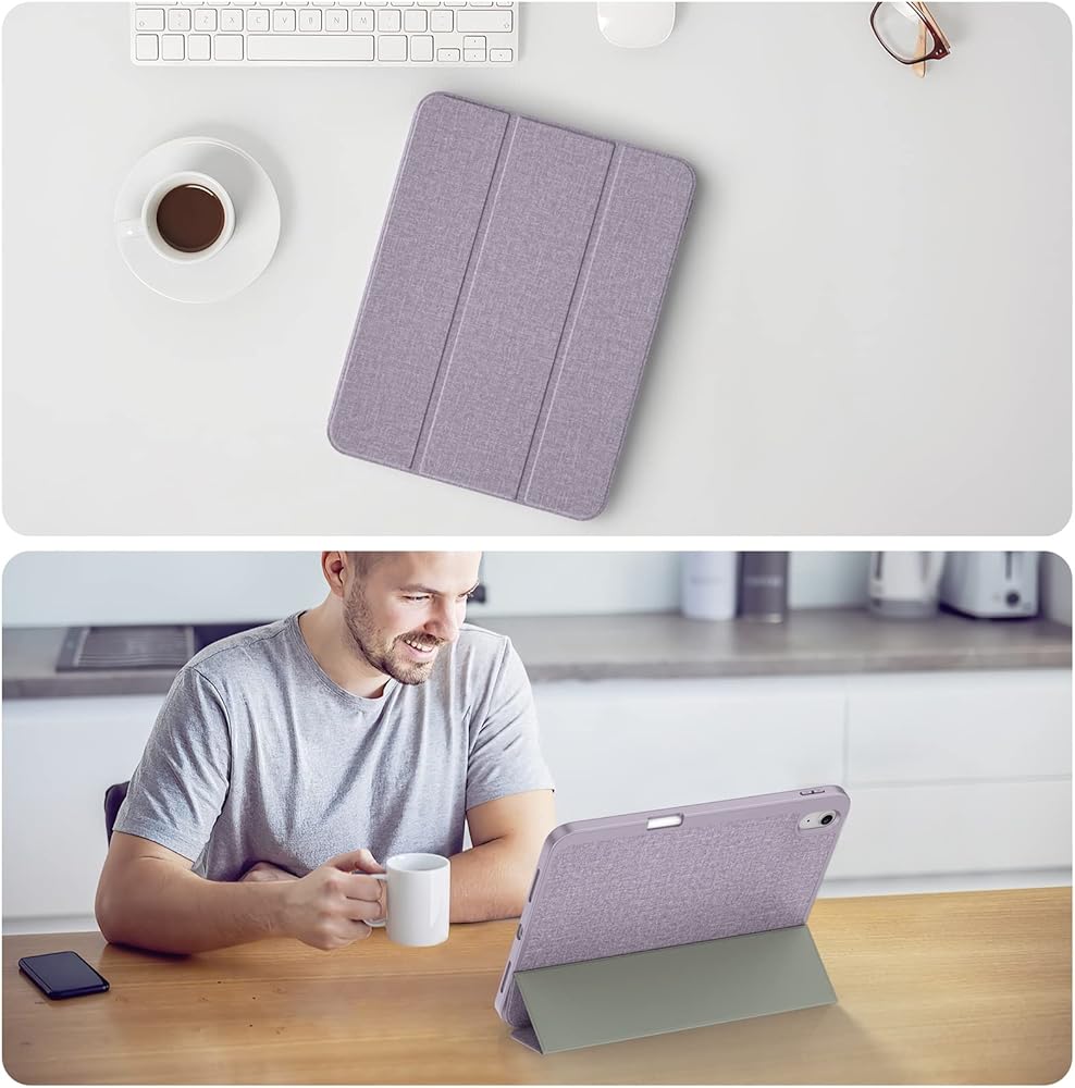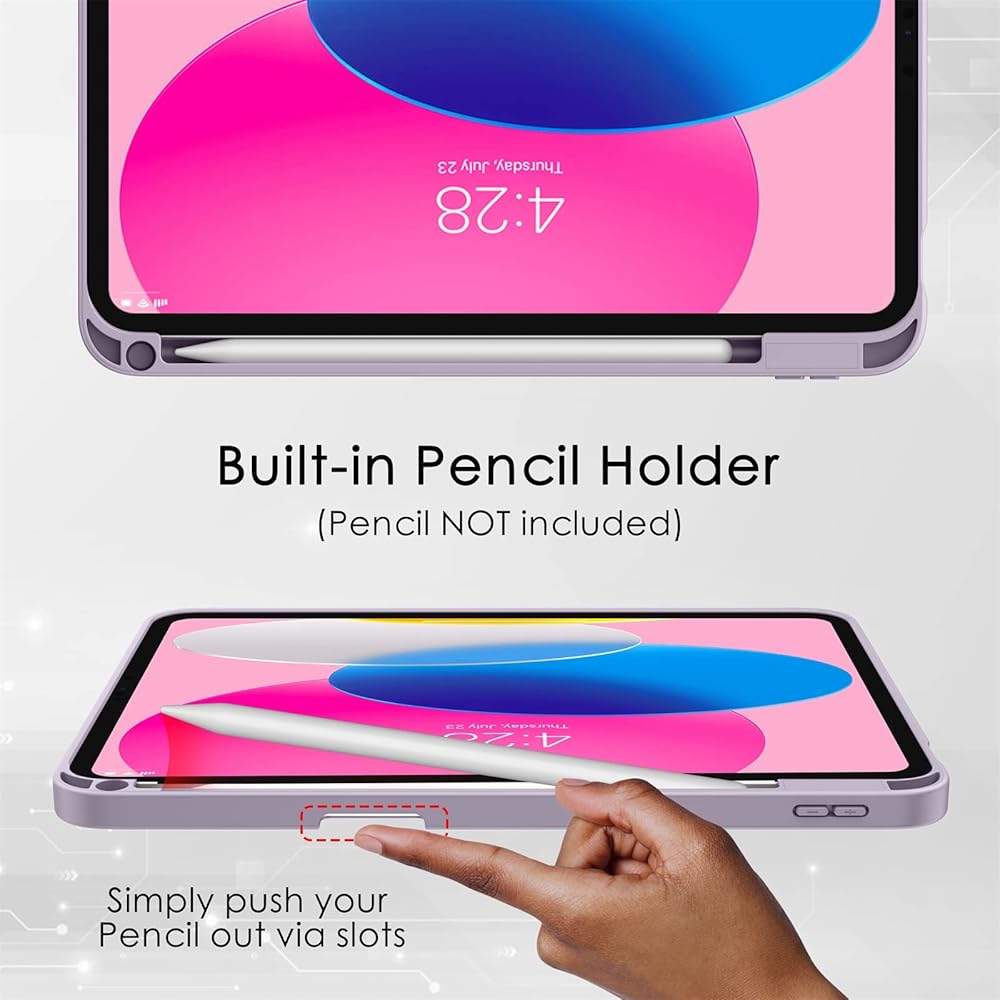 حافظة Soke لجهاز iPad الجيل العاشر 2022 مع حامل أقلام (10.9 بوصة) - حافظة ممتازة مقاومة للصدمات [نوم/تنبيه تلقائي] مع غطاء خلفي ناعم من مادة TPU وحامل نحيف ثلاثي الطي لجهاز iPad 10.9 بوصة، بنفسجي