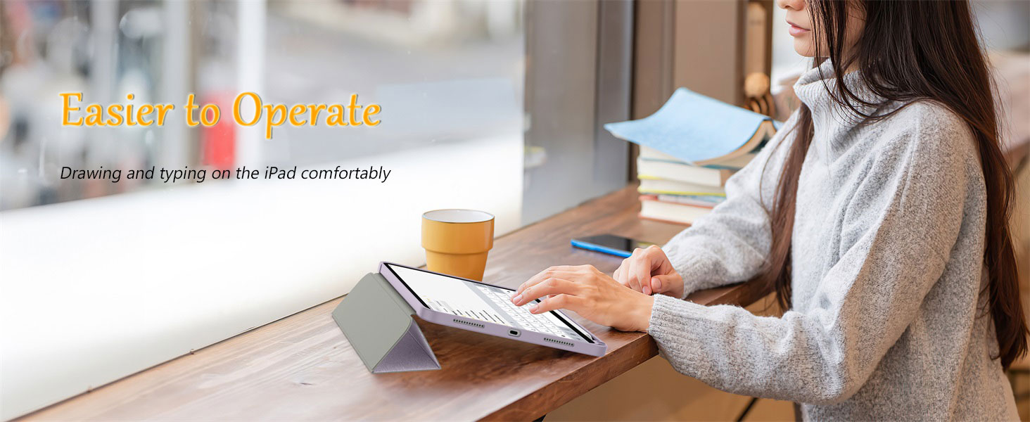 • [مصمم للحامل الثابت] - يمكنك بسهولة دعم جهاز iPad بأوضاع الوقوف المزدوجة للاستمتاع بكتابة لوحة المفاتيح ومشاهدة الأفلام الأكثر راحة. حرر يديك للتعامل مع أشياء أخرى.