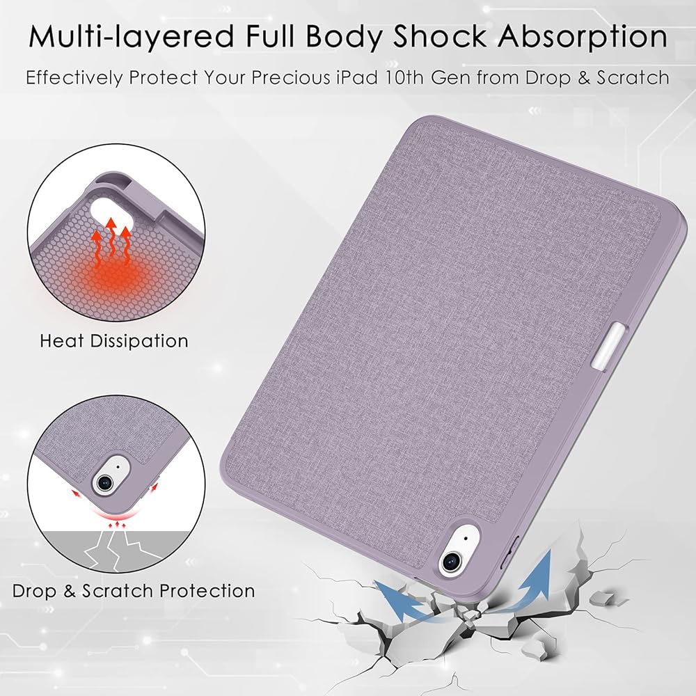 • [مصمم للحماية الكاملة] - يحمي الغلاف الخلفي الناعم المصنوع من مادة TPU حافظة iPad الجيل العاشر من الصدمات والسقوط والتأثيرات. بطانة ناعمة من الألياف الدقيقة مع جزء خارجي من جلد البولي يوريثان، تمنع جهازك اللوحي من الخدش.
