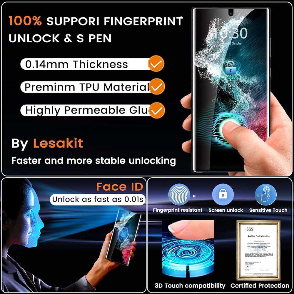 【Anti-Fingerprint 】 The surface of the protective film is treated with Anti-Fingerprint Coating and a plasma oleophobic coating, which is very smooth, effectively prevent fingerprints from sweat and oily smudges, making the screen very to clean.