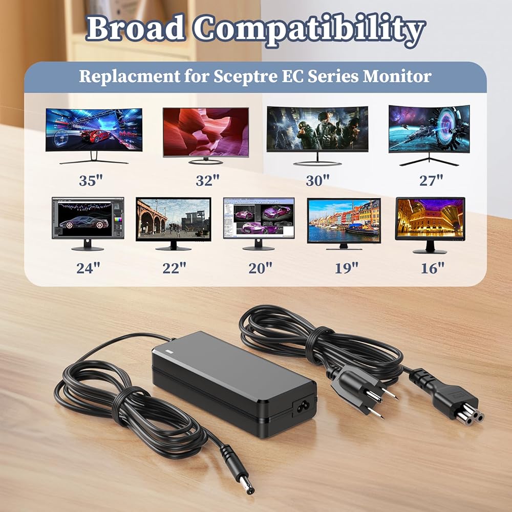 • Security Provided: Power cord: 8FT/2.5M. This replacement for Sceptre Curved Monitor power supply adapter is designed with multi protection including Short circuit, Over current, Over voltage, Over temperature to keep secure while charging