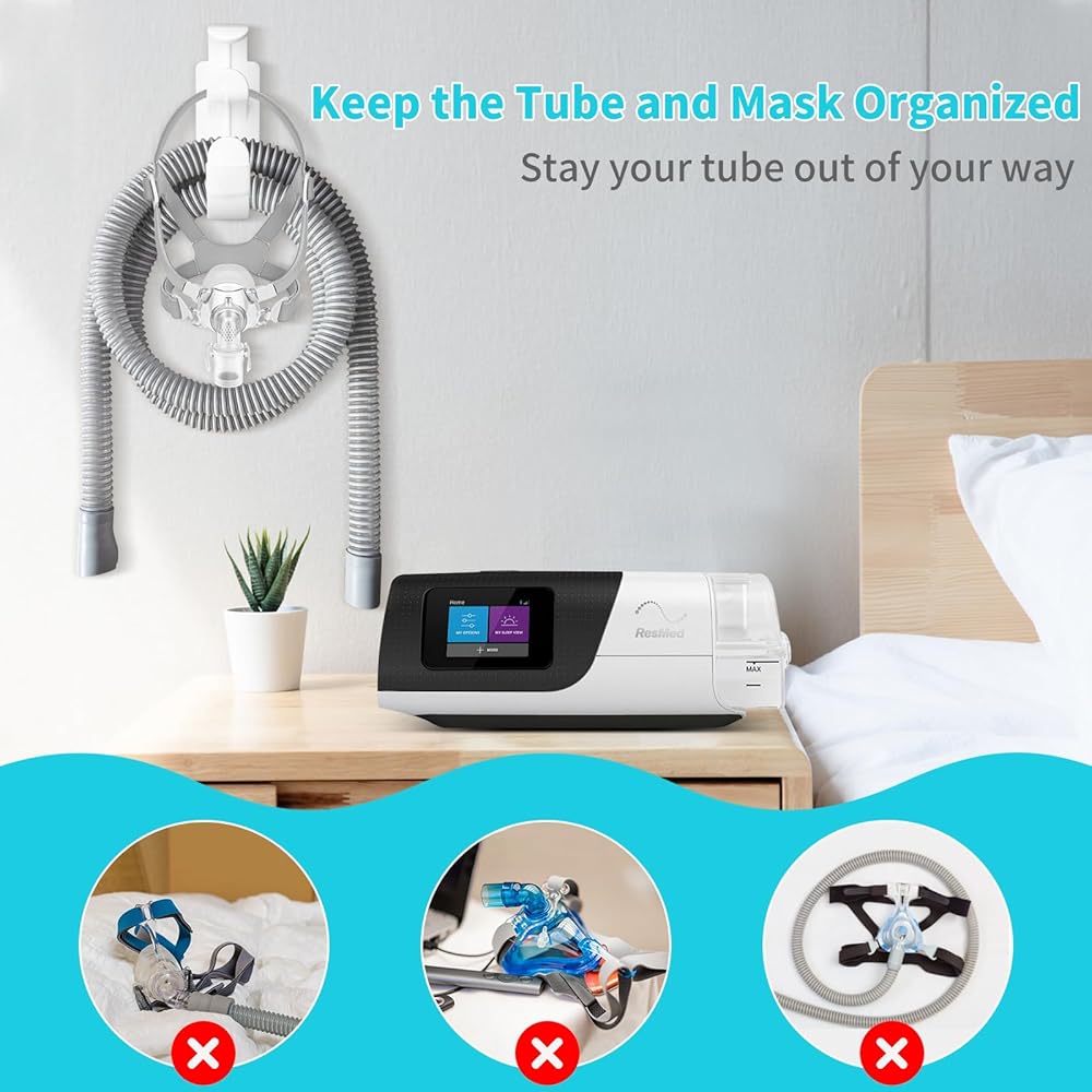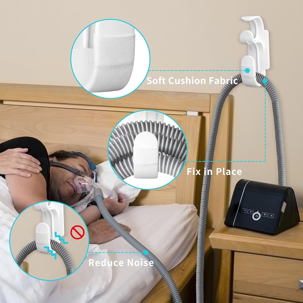 • قم بتثبيت الأنبوب في مكانه: تم تصميم شماعة خرطوم cpap خصيصًا لحمل خرطوم وقناع cpap. يتميز بخاصية مقاومة الانفصال، حيث يمكنه الحفاظ على 3 دوائر من الأنابيب والقناع في مكانها دون السقوط. لا مزيد من القلق بشأن تشابك الخرطوم حول الرقبة.