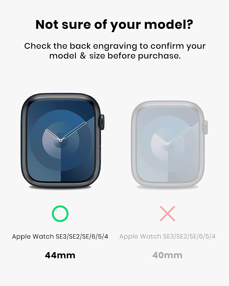 الطرز المتوافقة: حزام قابل للتعديل يناسب معظم المعصم (5.71 بوصة - 8.74 بوصة)، مناسب لسلسلة Apple Watch 6/SE/5/4 (44 مم).