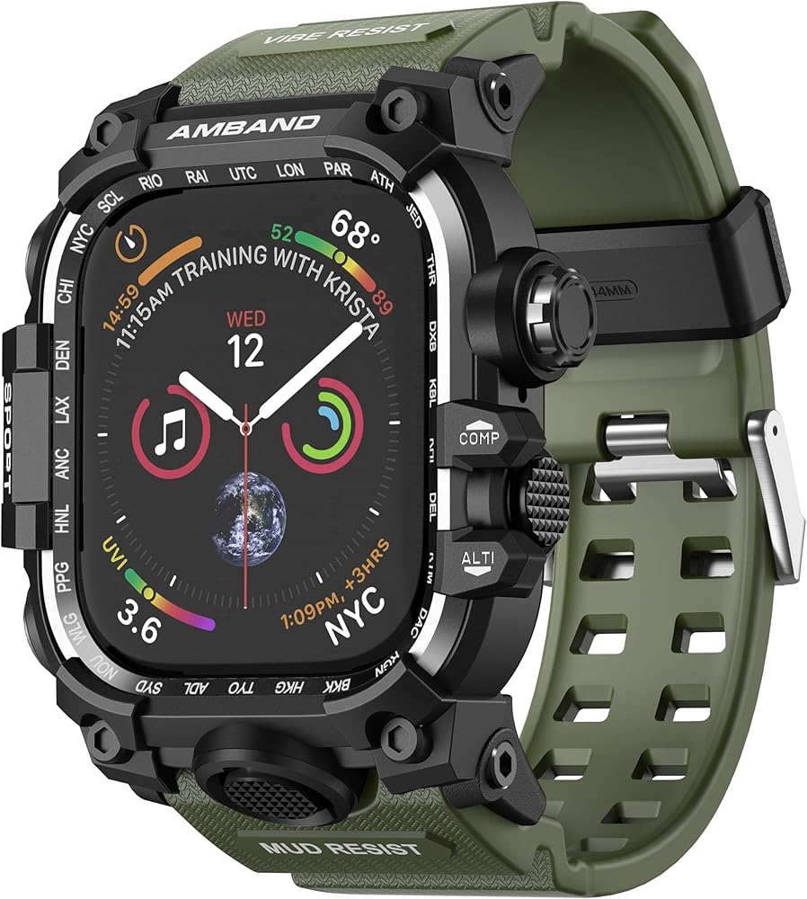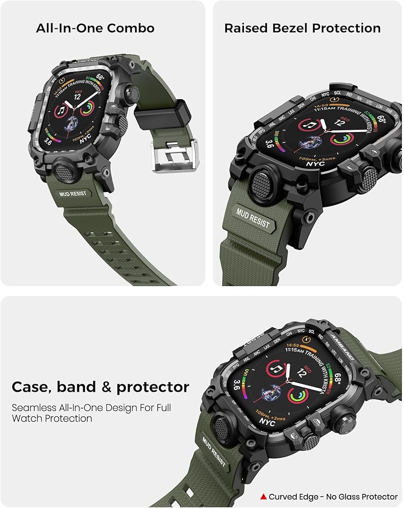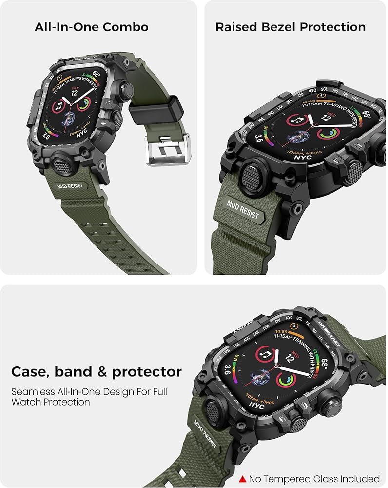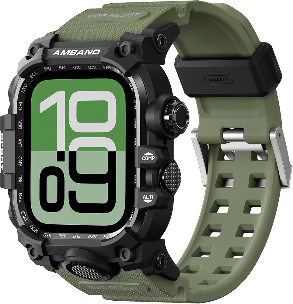 Amband Rugged Case مع Band for Apple Watch 44mm ، متوافق مع Iwatch Series SE 3/SE 2nd Generation/SE/6/5/4 ، غطاء الصدمات العسكري للصف العسكري ، الفرقة التكتيكية للرجال ، الجيش الأخضر