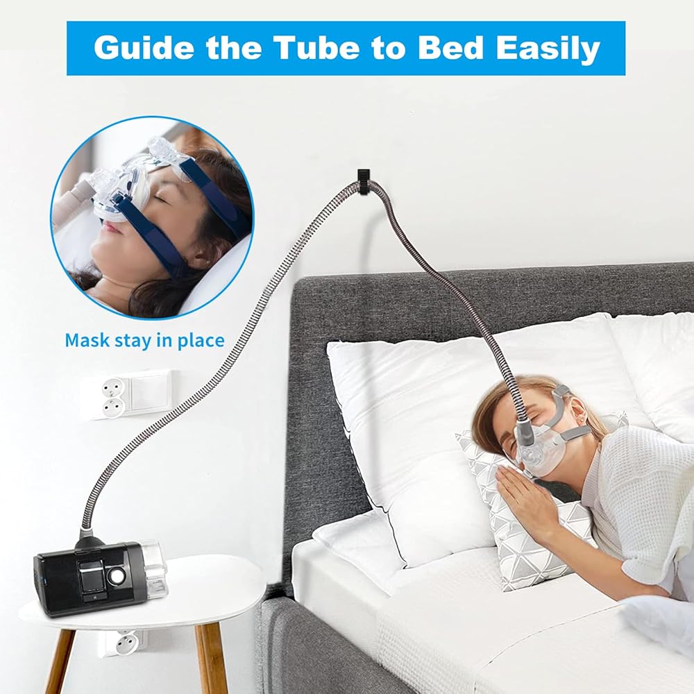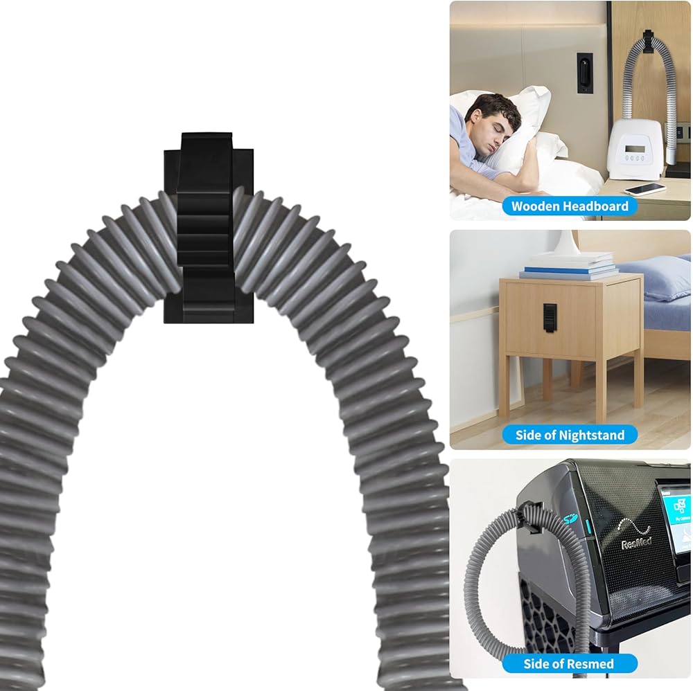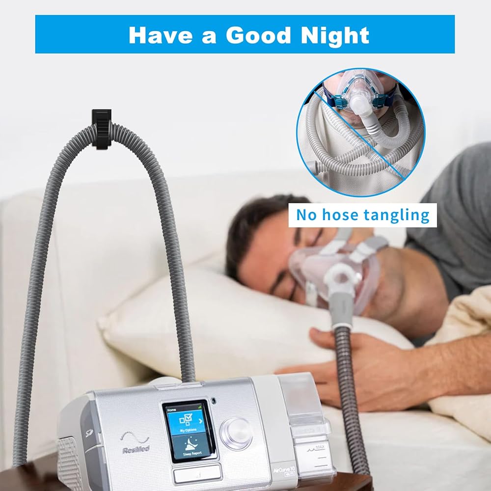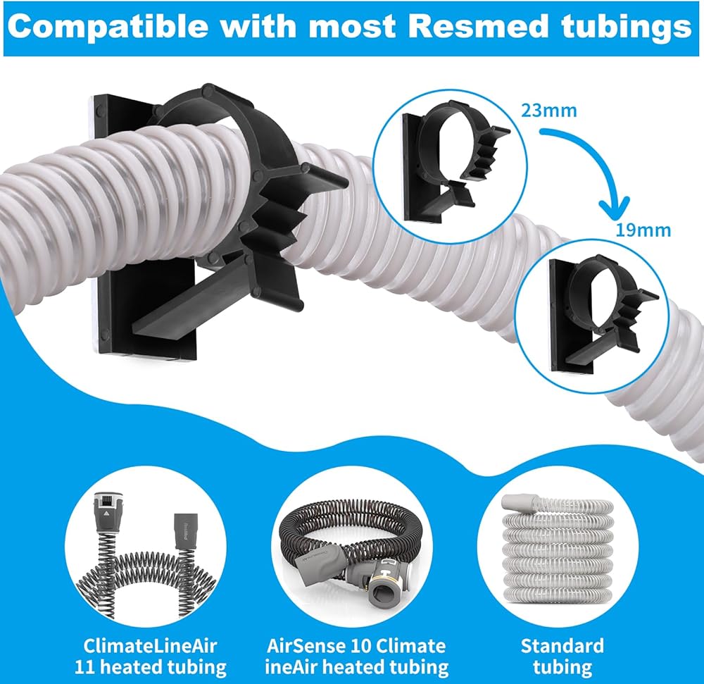 【CPAP Hose Organiser】The Resmed tube holder can also be a organiser. It hangs better with the hose and keeps my hose in place perfectly. It won't let the hose get caught on the side of the bed. Keep your hose out of your way.