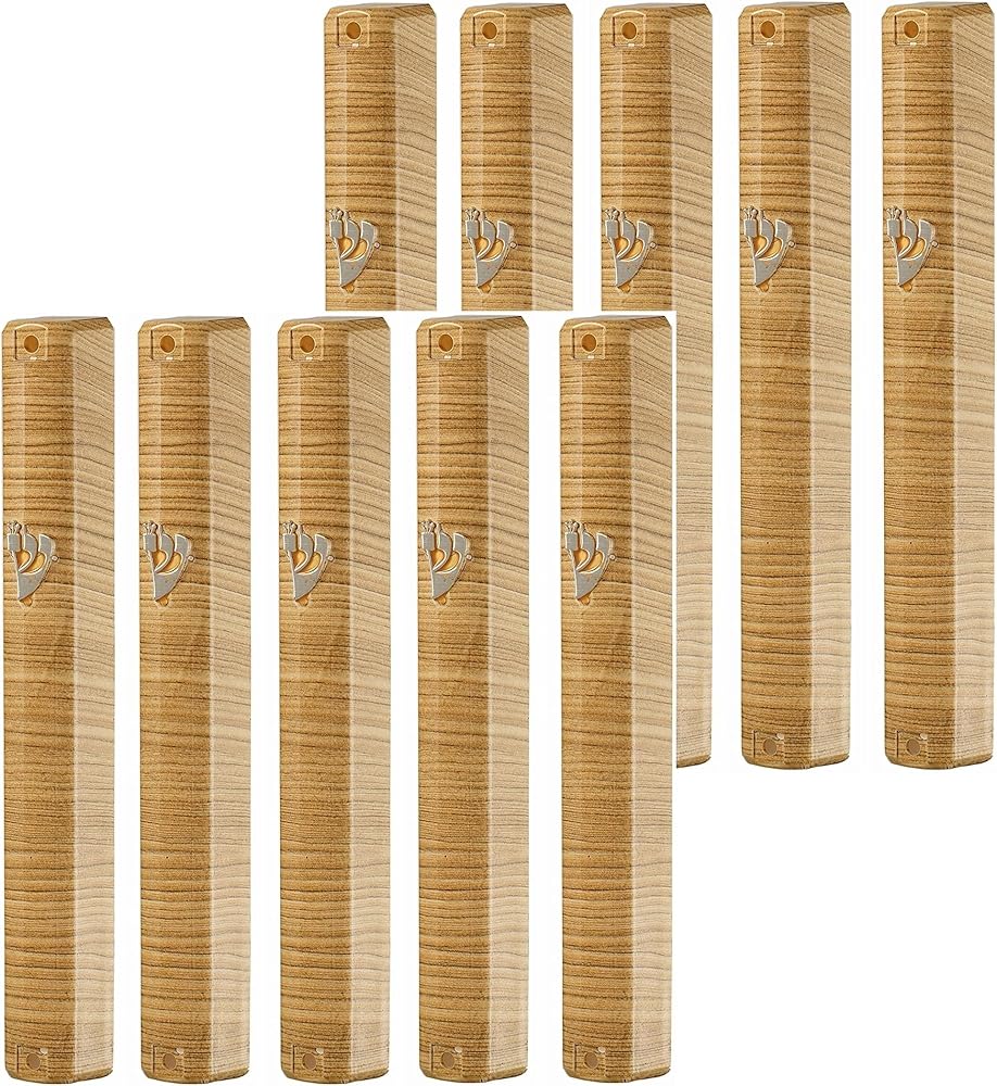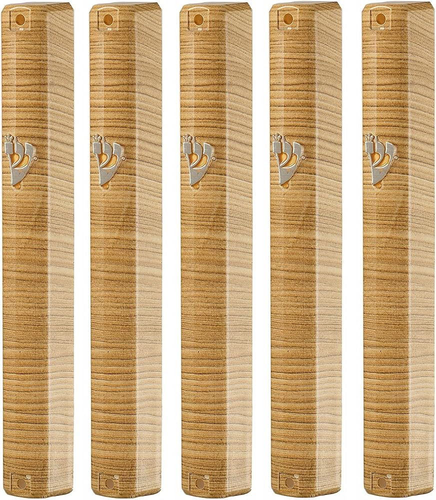 حامل حافظة MEZUZAH (شيدل) بلاستيك معدن مطلي خشب بني أبيض مخطط من الفلين المطاطي (# 12 يناسب لفافة مقاس 12 سم)