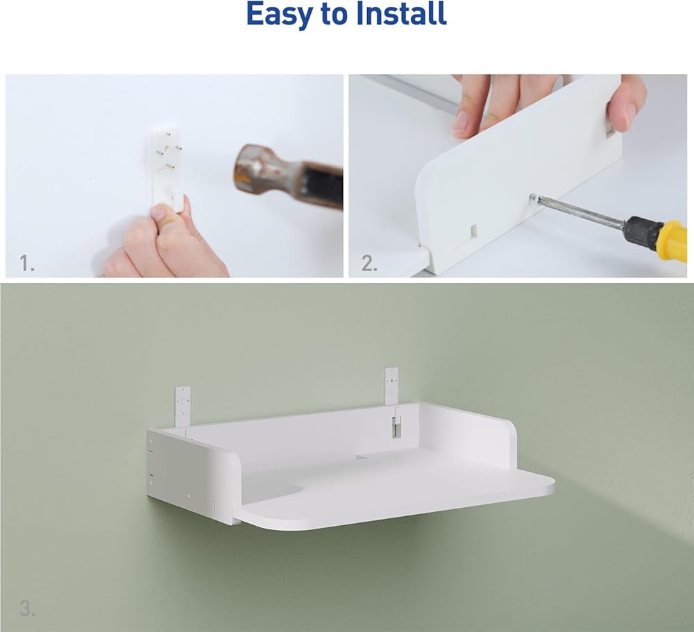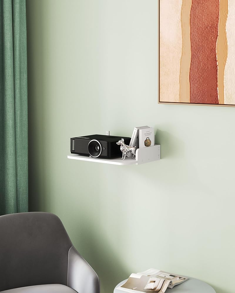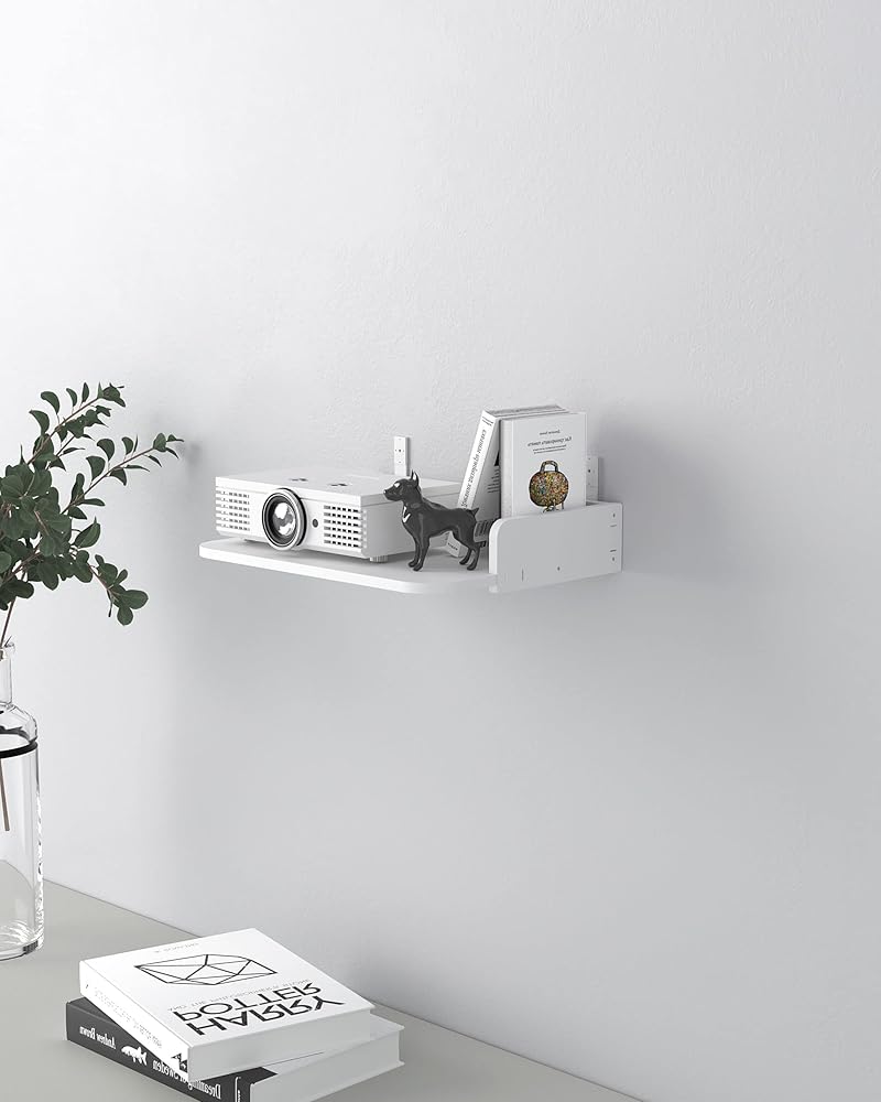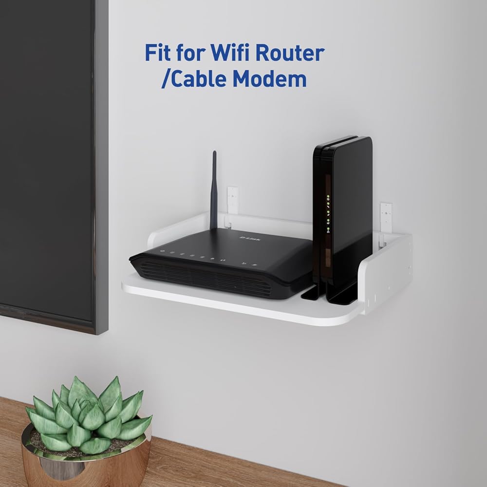 AREAJD رف جهاز عرض صغير صغير / رف مودم / رف جهاز التوجيه / حامل جدار جهاز التوجيه / حامل صندوق كابل على الحائط، جهاز عرض مثبت على الحائط عائم، رف جهاز عرض للجدار، حامل حامل جهاز عرض ملحقات بيضاء