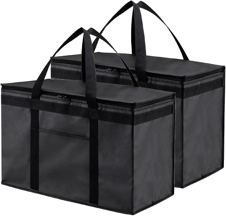حقيبة تبريد معزولة وسخان الطعام من NZ Home (حجم XXL، عبوتان) لتوصيل الطعام وتسوق البقالة مع سحاب علوي، أسود