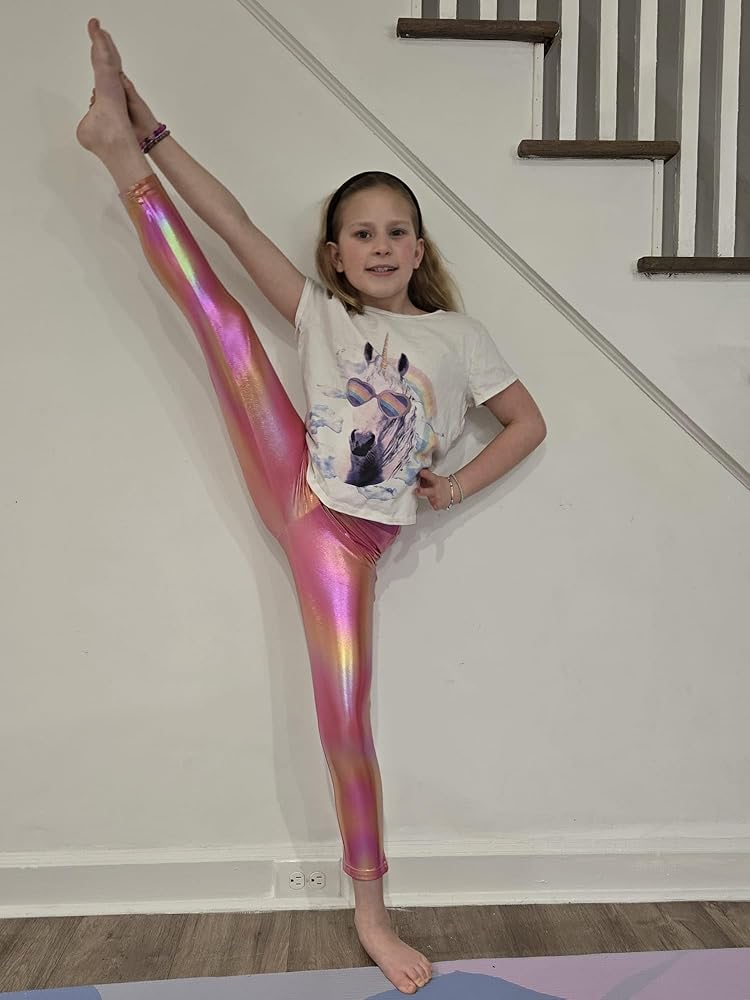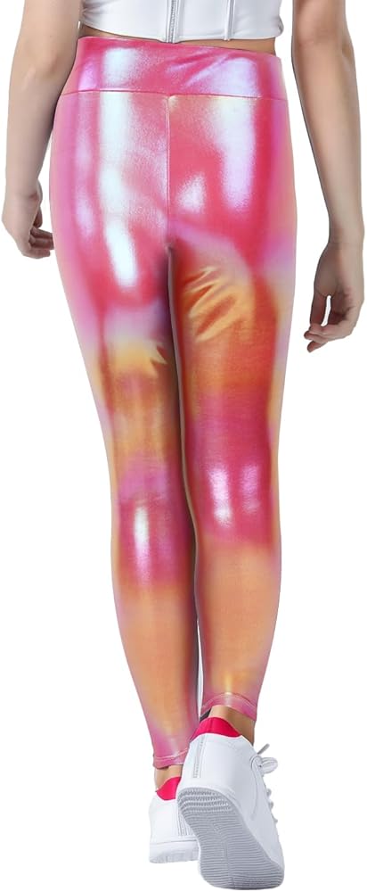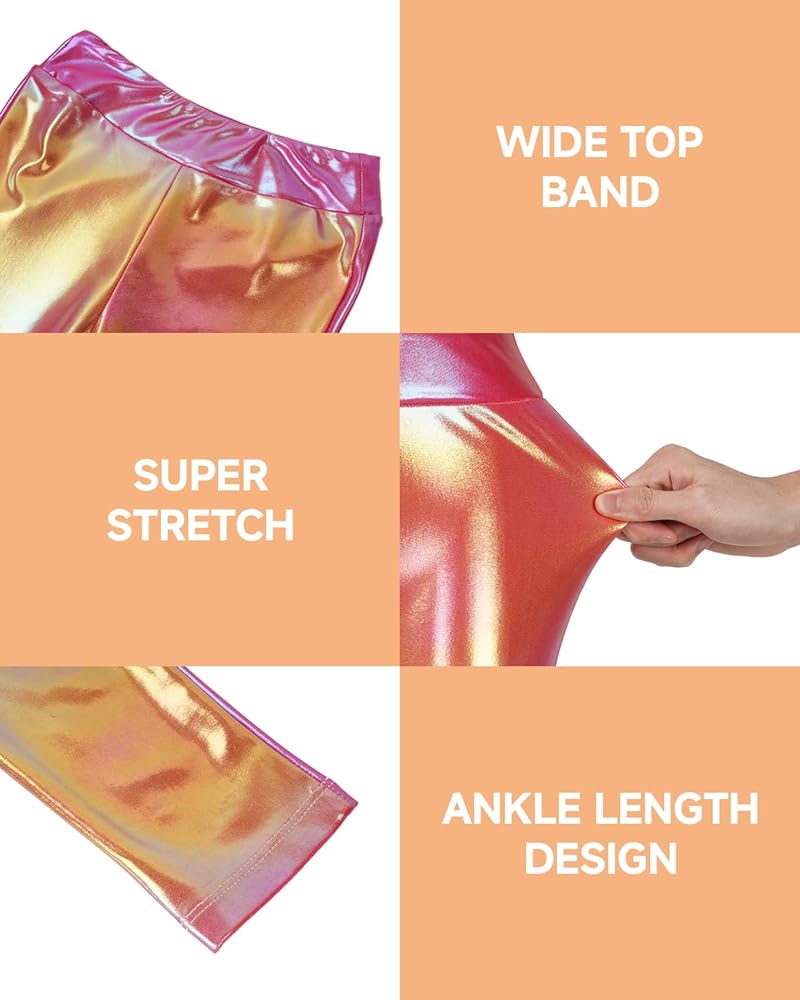 【نسيج عالي الجودة】السراويل الضيقة المعدنية للفتيات من JiAmy مصنوعة من نسيج عالي الجودة، قابل للتمدد، صديق للبشرة، مسامي وسريع الجفاف، ملابس الفتيات مع تمدد فائق وأقصى قدر من الراحة، سواء كانوا يمارسون الرياضة أو يرقصون، يجعلك تشعرين بخفة من الهواء.