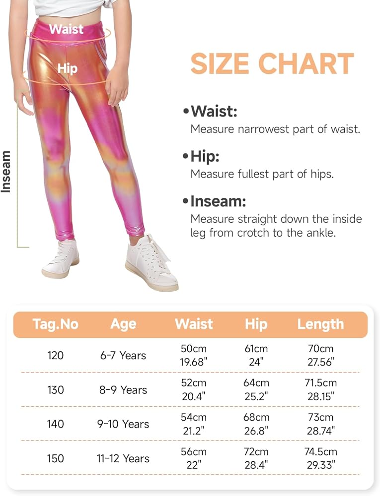 【لامعة وعصرية】تعد سراويل الفتيات اللامعة من JiAmy موضة رائجة الآن، ومن المؤكد أنها ستجعل مصمم الأزياء الصغير الخاص بك مميزًا بين الآخرين. البنطلون الضيق ذو اللون المعدني للفتيات لا يبقيك مرتاحًا من النهار إلى الليل فحسب، بل يضيف أيضًا إحساسًا بالأناقة.