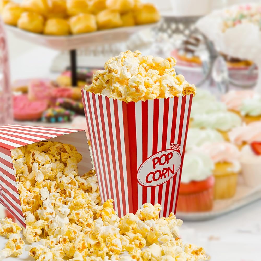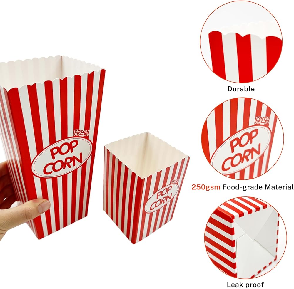 Disposable Popcorn Container-Essential Food Box Decoration For Movie Nights Red/White Stripes Design,Attract the attention of your guests,Create a comfortable atmosphere.