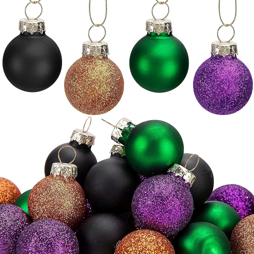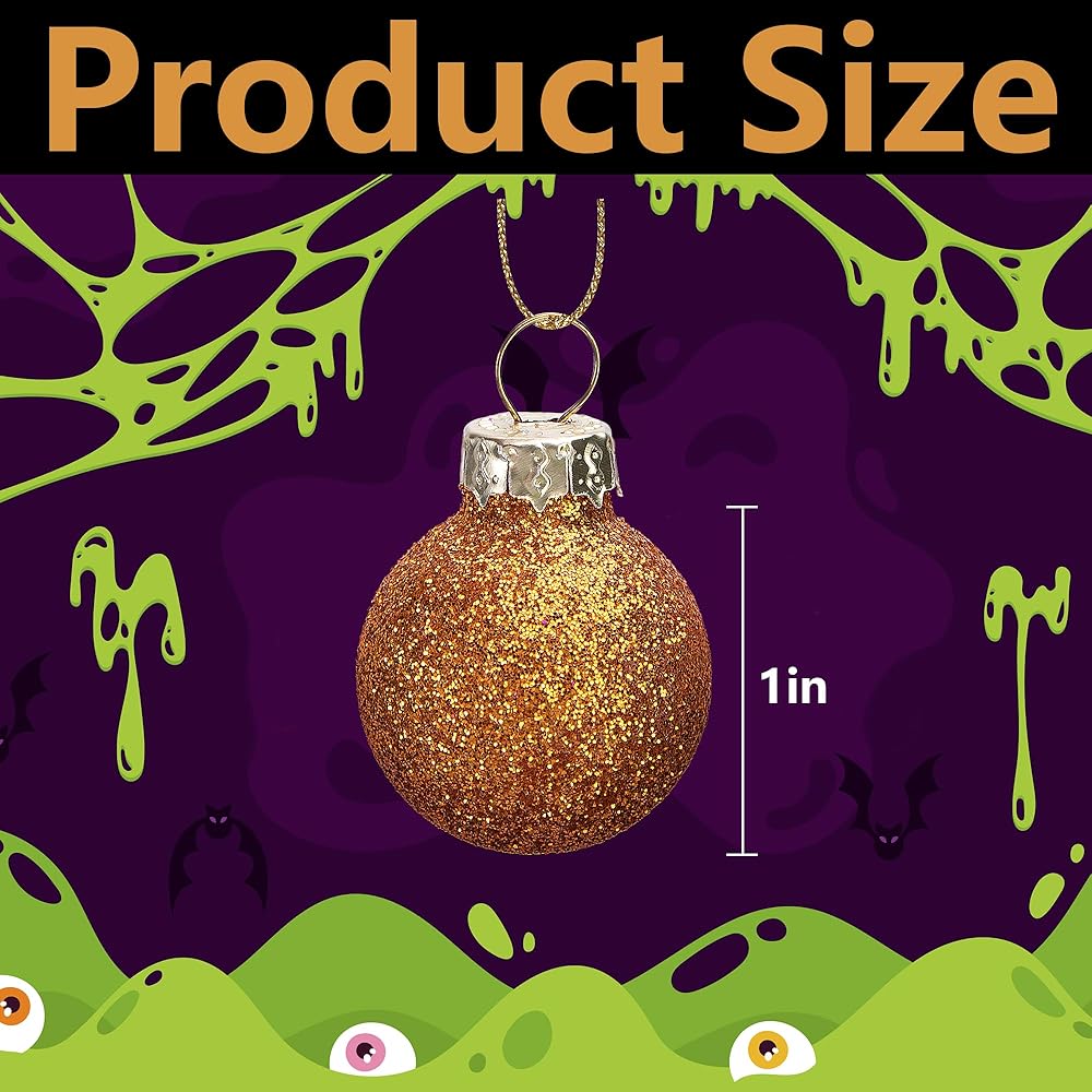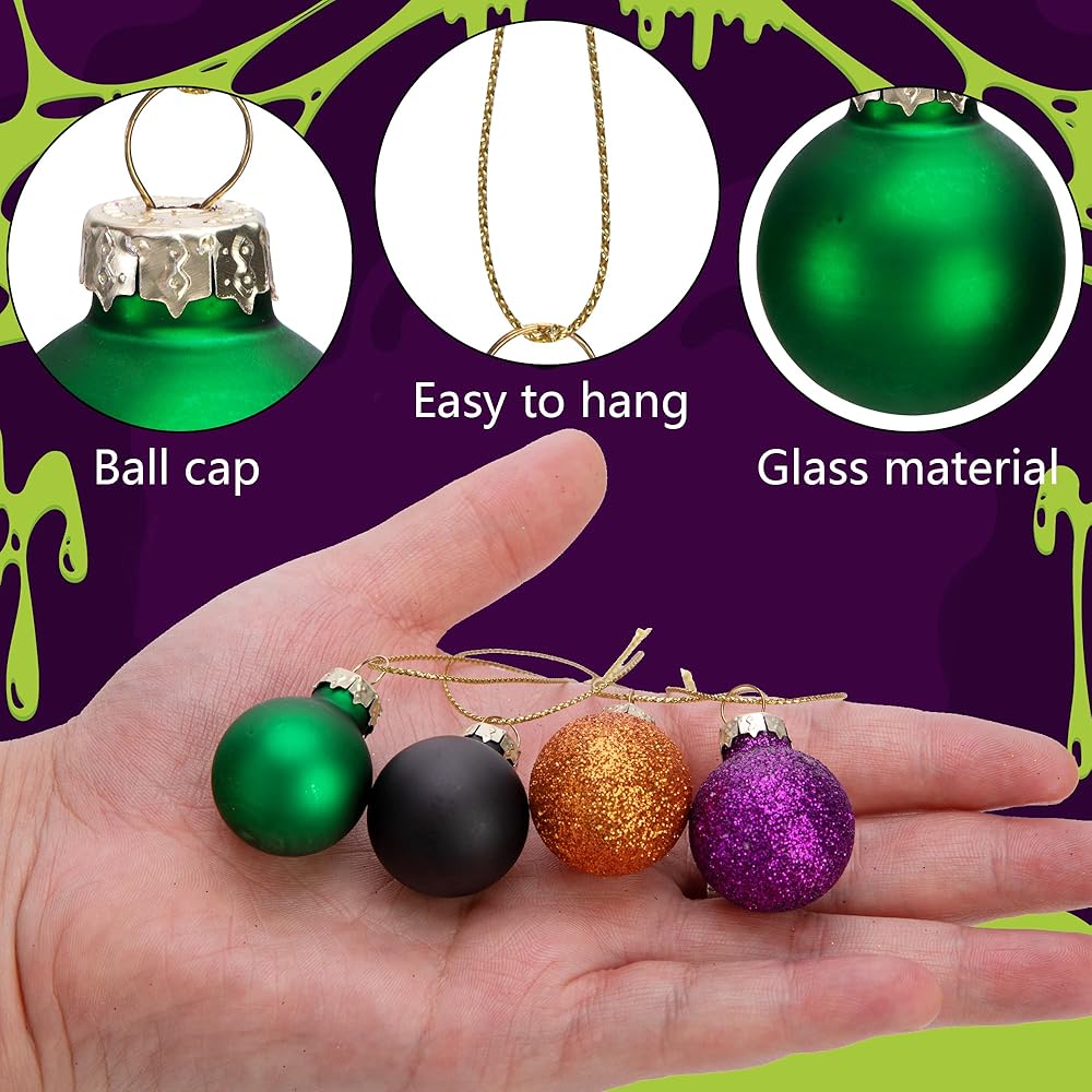 (2)Our mini ball ornaments for tree contain 4 different colors, glitter yellow and purple, matte green and black, match perfectly with your Halloween decoration and look more atmospheric overall.