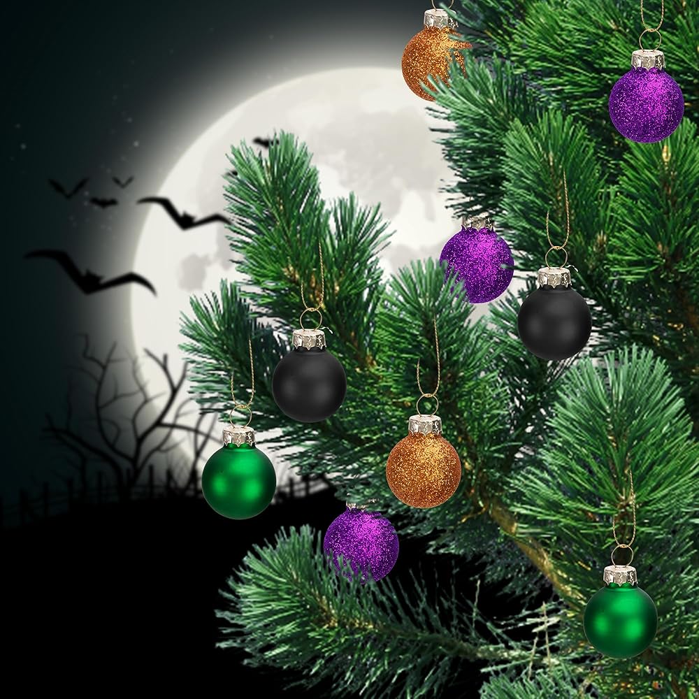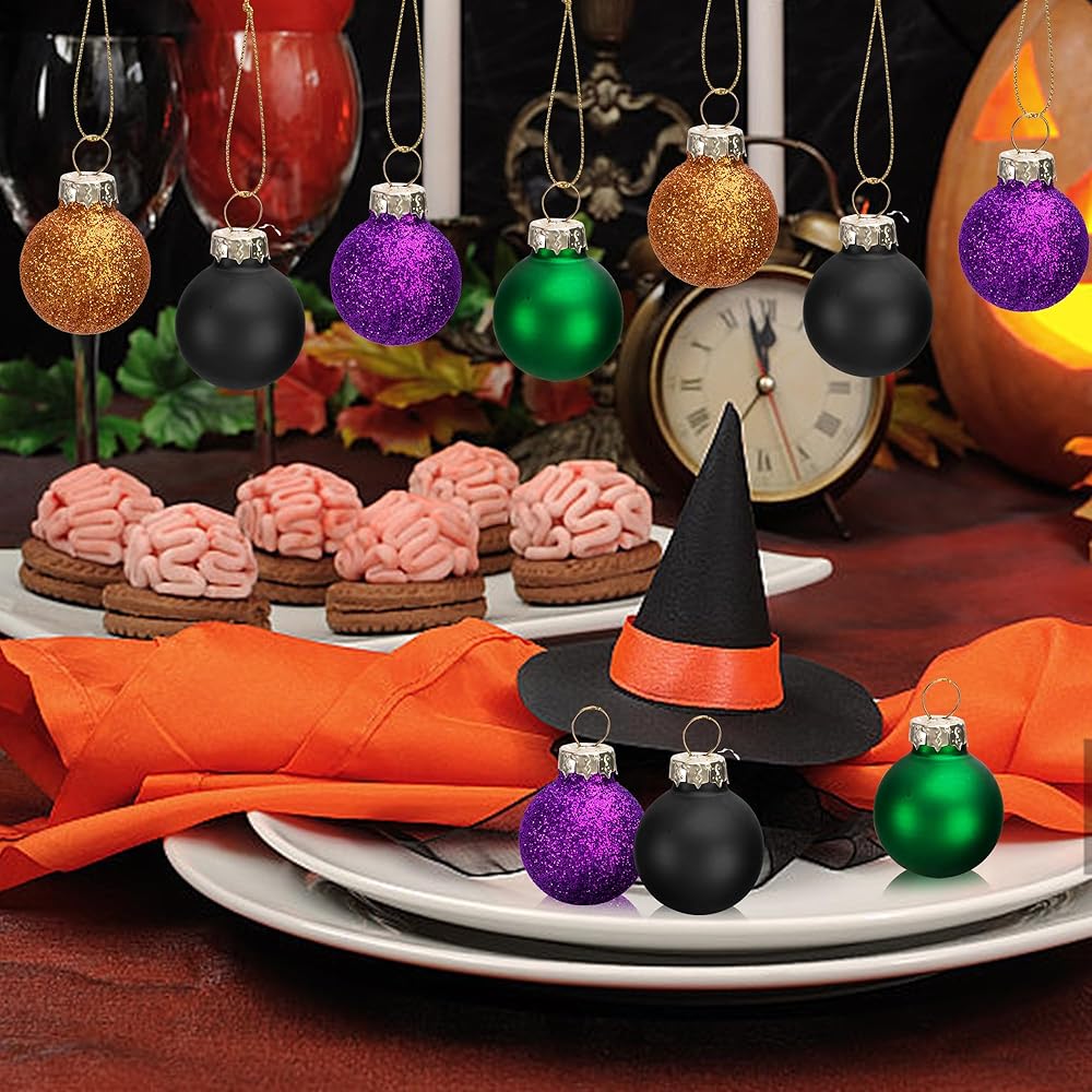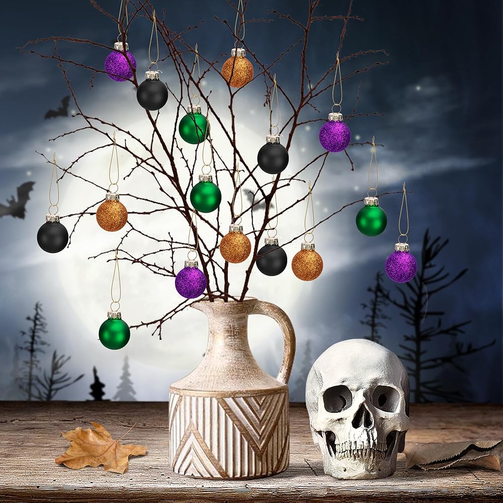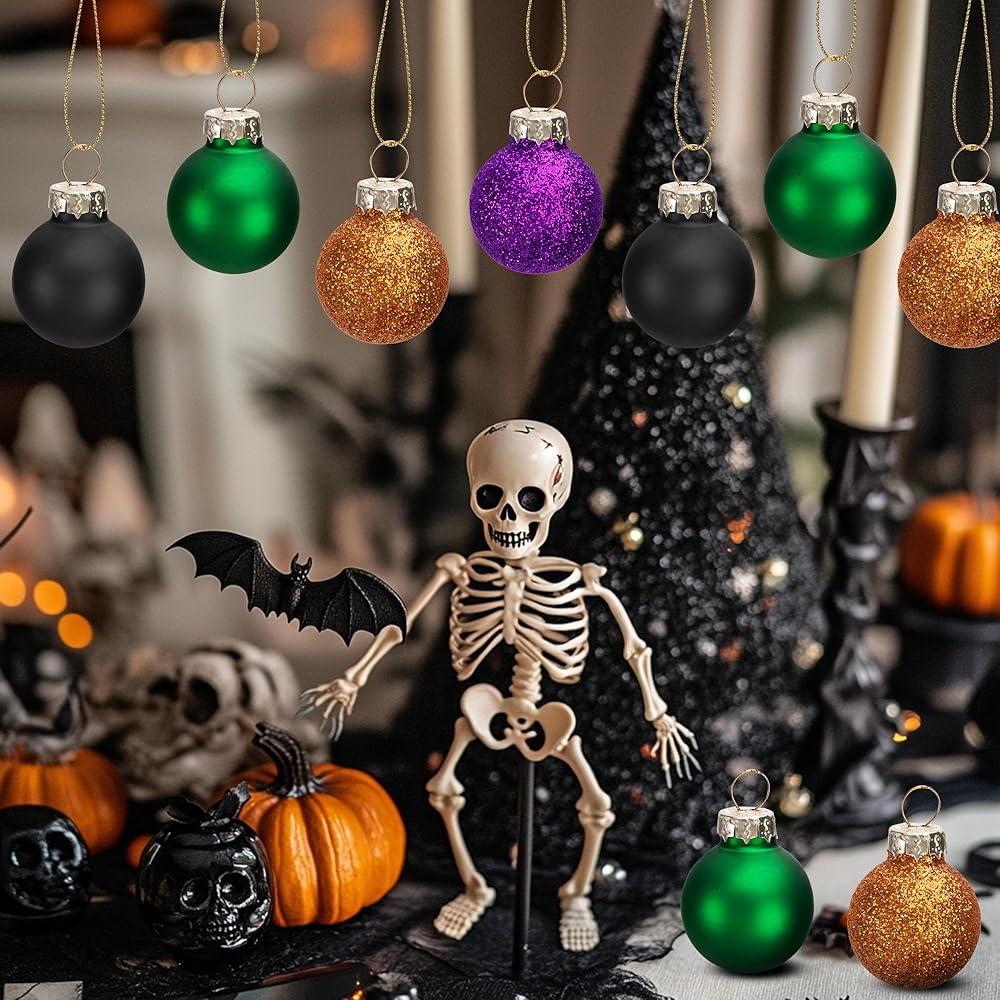 Watayo 24 Pcs Halloween Balls Glass Ornaments- 1" Mini Glitter Glass Balls Hanging Ornaments- Small Halloween Balls Tree Ornaments for Party Haunted House Christmas Tree Decor