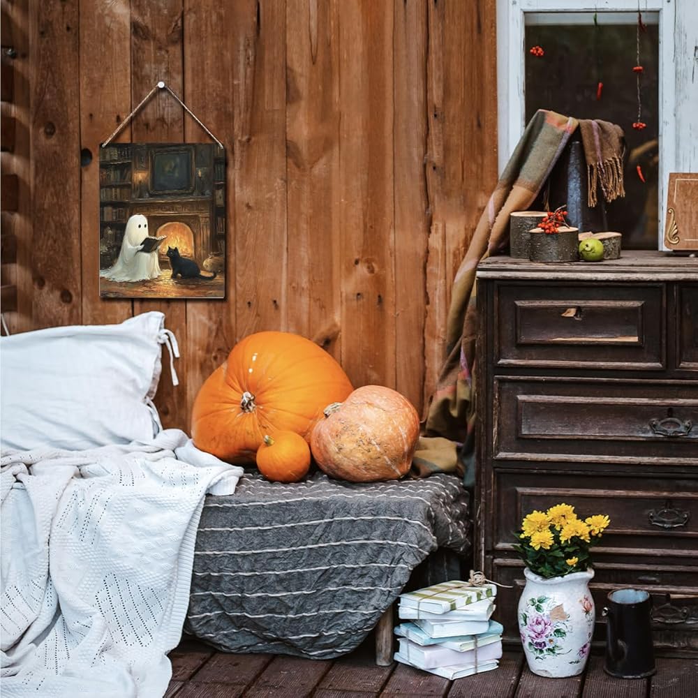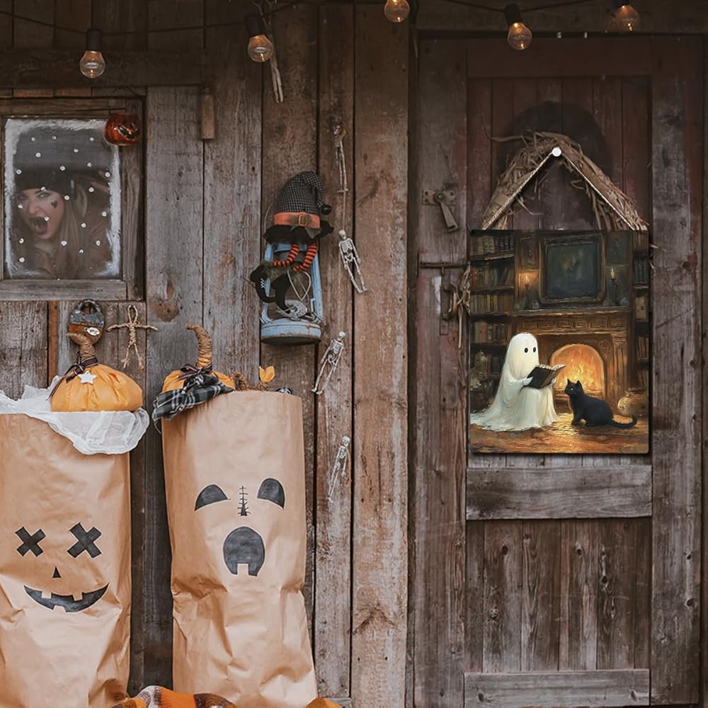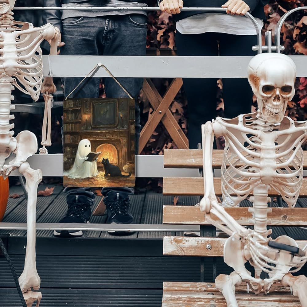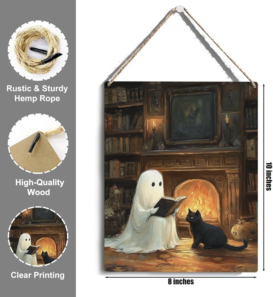 • Unique Halloween Decorations: The Halloween sign uses cute ghosts, and scary black cats,The cute Halloween door hanger design is unique and creative, stunning and can easily meet your decoration requirements, adding personalized charm to any room