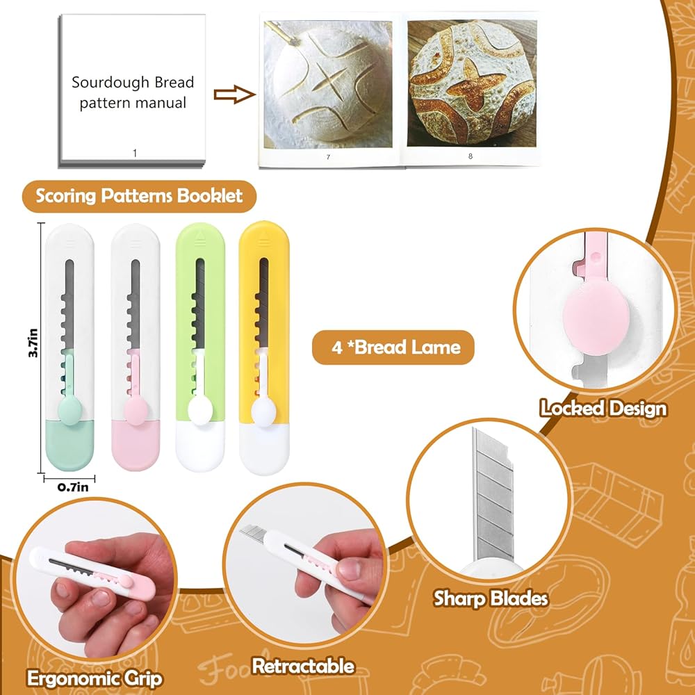 Easy to Use,No Installation and Replacement of Blades: Compared to other bread scoring tools, our bread lame dough scoring tool has an innovative retractable design, which is much easier to use, no need to install and replace the blades frequently, more enduring. The ergonomic grip makes it more comfortable to use and saves you valuable time and energy. Whether you are a novice or an experienced baker, you can carve the perfect pattern and add color to your bread baking.