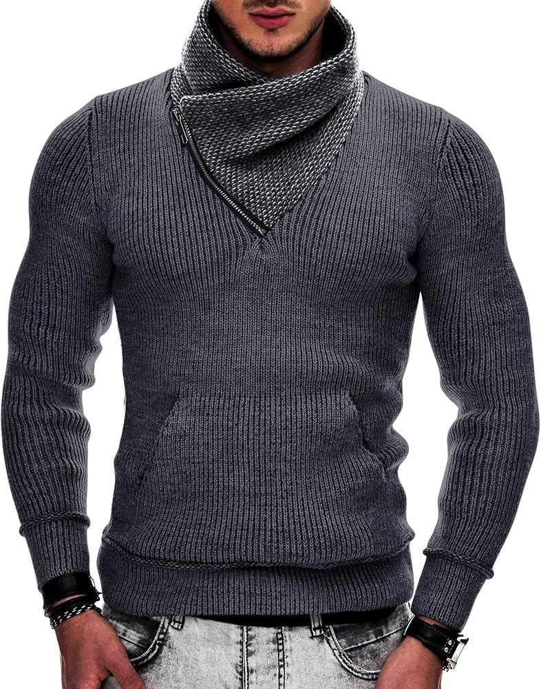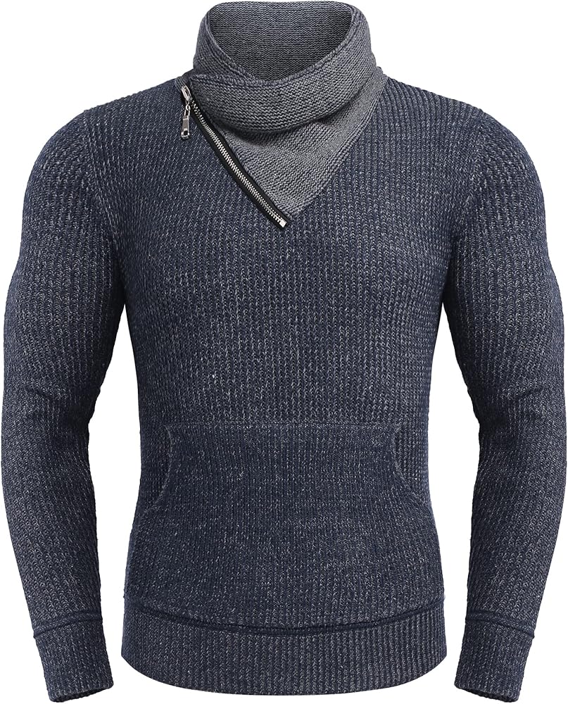 تصميم بسحاب برقبة دائرية --- هذه السترة الرجالية المحبوكة برقبة السلحفاة مع تصميم أنيق بياقة عالية قابلة للتعديل، يمكنك ضبط السحاب الجانبي على الرقبة حسب احتياجاتك. لا يمكنك اعتبارها سترة ذات ياقة عالية فحسب، بل أيضًا سترة بياقة شال، والتي يمكن أن توفر لك أقصى قدر من الراحة عند الرقبة وتجربة ارتداء أنيقة.