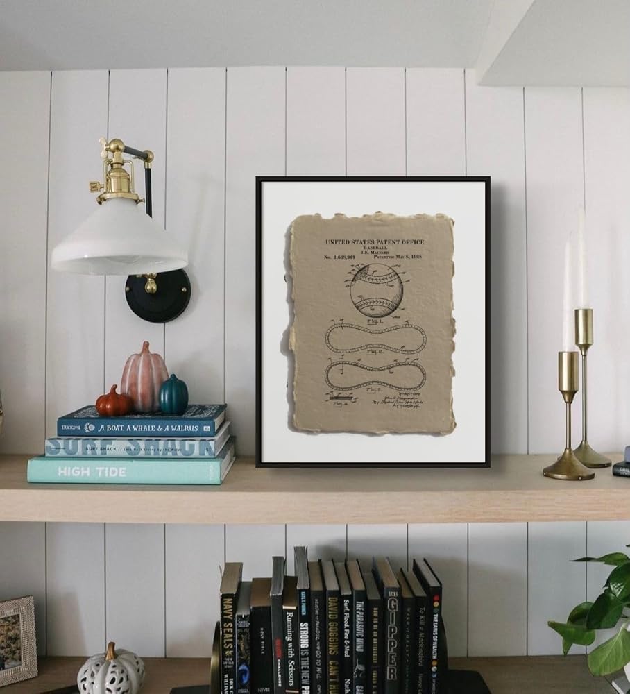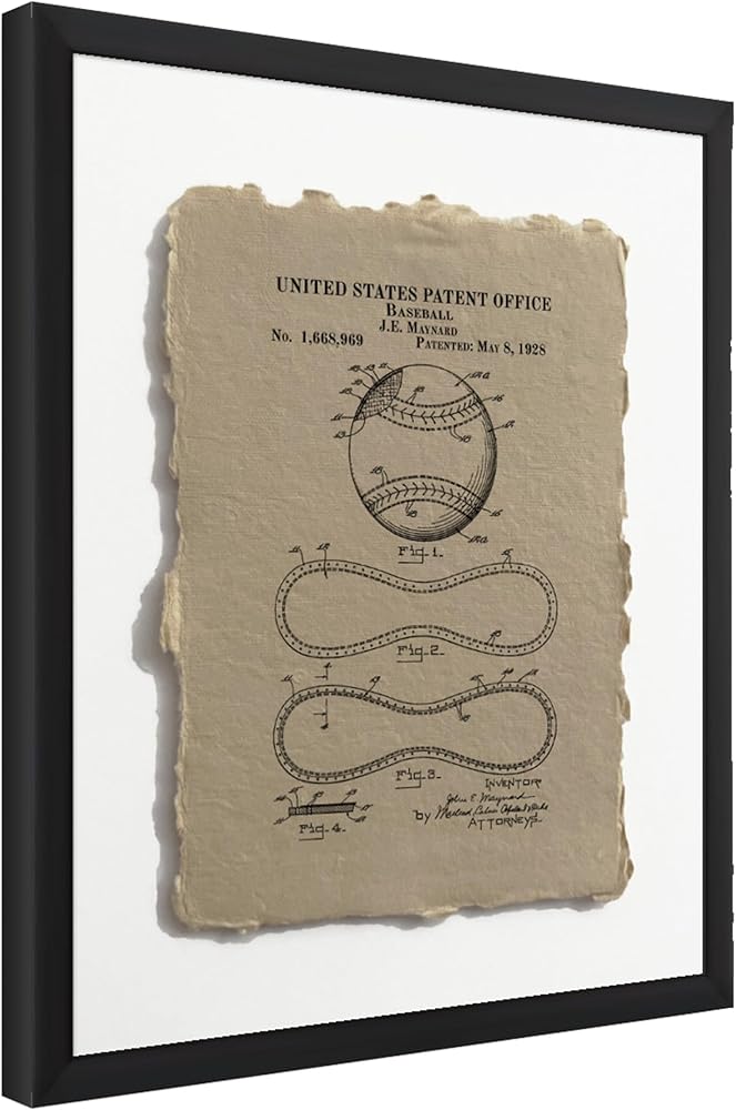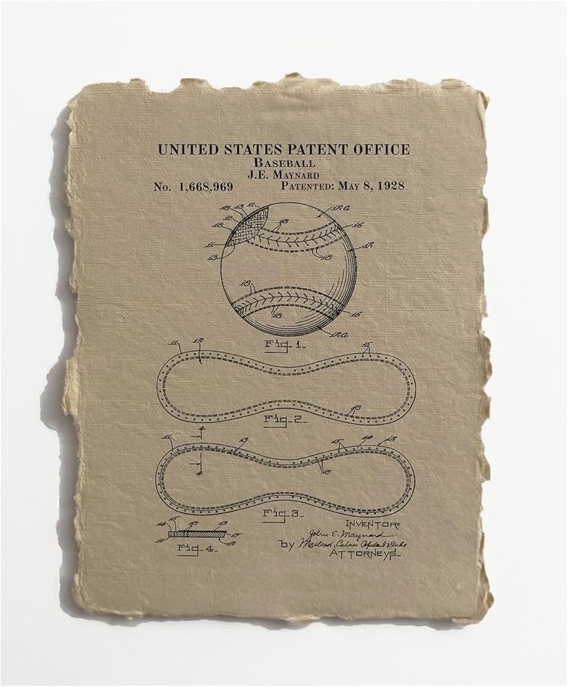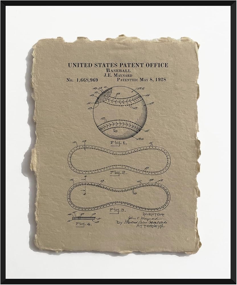Discover beautiful vintage patent prints that have helped shape the technology, design, music, sports, leisure, and gaming industries. Our original digitally re-mastered vintage artwork prints - vintage sports posters from the 19th and 20th century create intriguing monochrome compositions with an exacting fidelity. The prints are understated and captivating for any room. These minimalist neutral colors allow us to showcase the unearthed treasures, disruptive inventions, and progress across passions, industries, markets and time. We love the effect of a simple beautiful piece of art. We recommend each to be mounted in a larger frame to show off the unique edges, drawing your eye inward to the piece. The fine details of the archival print can be perfectly displayed in a shadow box, single or double matted frame, or a floating frame. The larger sized frame with the smaller print allows the delicate paper plenty of negative space for balance and appreciation of the hand crafted artwork sides. Each image captures an important piece of baseball equipment design, making it a great conversation piece for any baseball fan or top players like Babe Ruth, Ted Williams, Jackie Robinson, Derek Jeter, Mike Trout, and Shohei Ohtani, and other stars of the MLB. Is this your replacement of an modern major league mlb poster? This is the baseball decoration that you need for you your cool room dedicated to a passion. This is a unique gift for birthday, graduation, wedding, Christmas, Father's day, Mother's day, Valentine's day, retirement or anniversary for men, women, husband, wife, kid, boyfriend, girlfriend, friend, dad, grandpa, sports fan or fans of all ages.