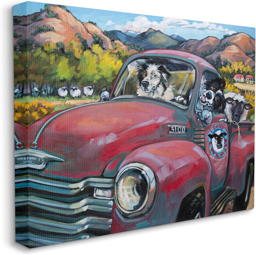 • Artwork Relates To: Painting, Car, Transportation, Vehicle, Pickup Truck, Truck, Animal, Canine, Dog, Mammal, Pet, Sheep, Farm