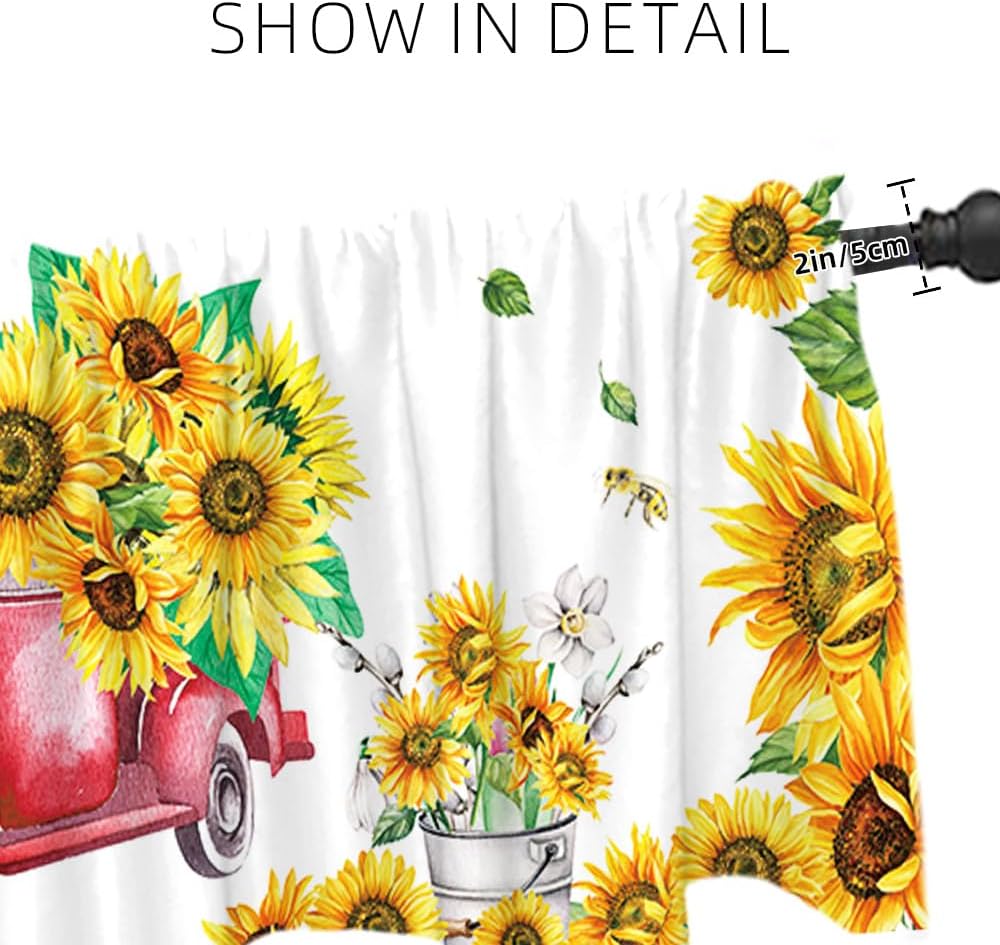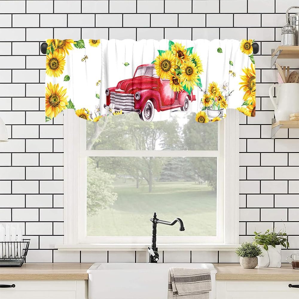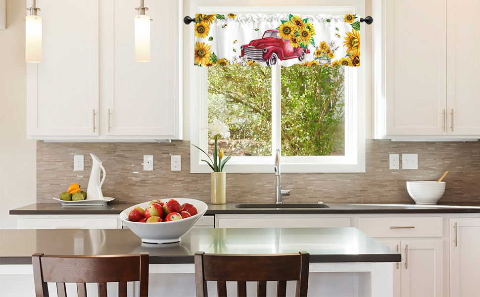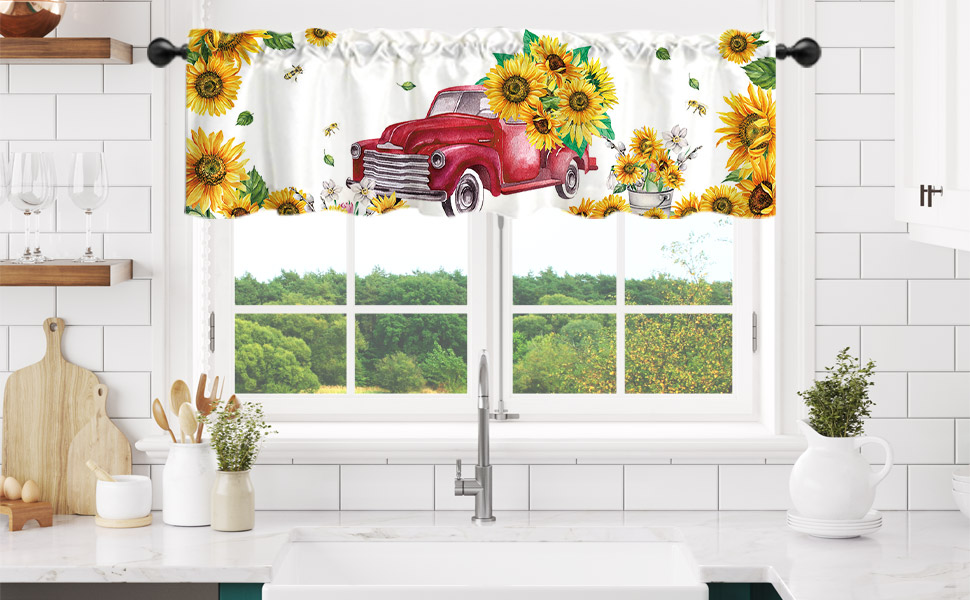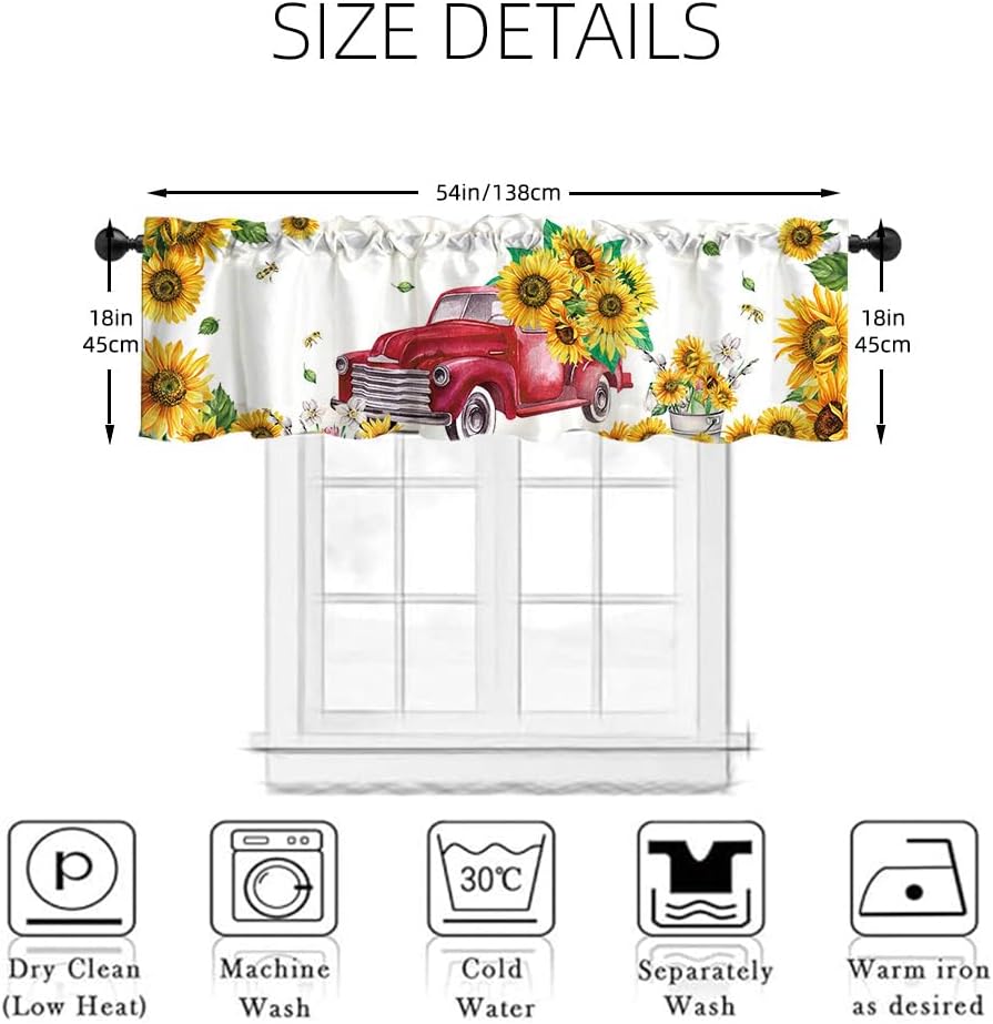 ديكور المنزل: يمكن استخدام هذه الشاحنة الحمراء مع ستارة معالجة نافذة عباد الشمس في المطبخ وغرفة النوم والحمام وغرفة المعيشة وغرفة الطعام. يمكنها أن تجعل نوافذك تبدو جميلة وواسعة.