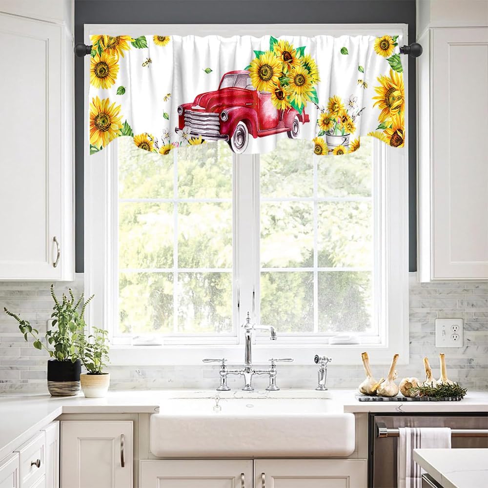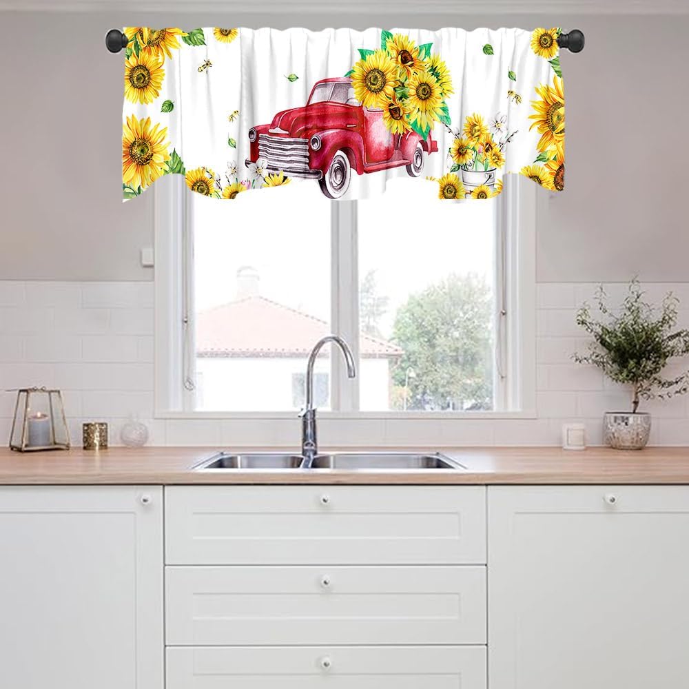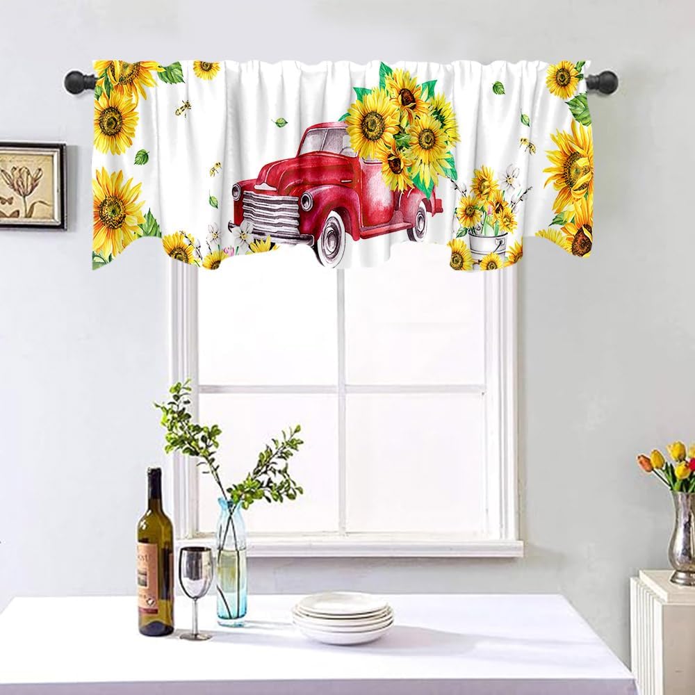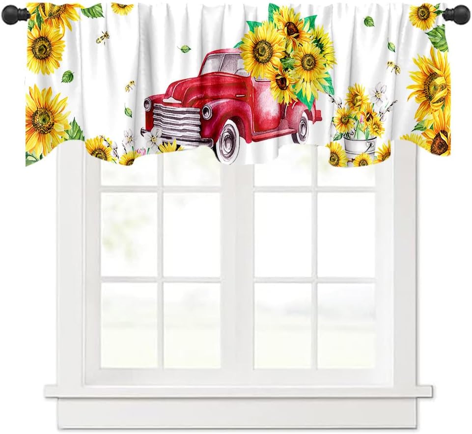 ديكور المنزل: يمكن استخدام هذه الشاحنة الحمراء مع ستارة معالجة نافذة عباد الشمس في المطبخ وغرفة النوم والحمام وغرفة المعيشة وغرفة الطعام. يمكنها أن تجعل نوافذك تبدو جميلة وواسعة.