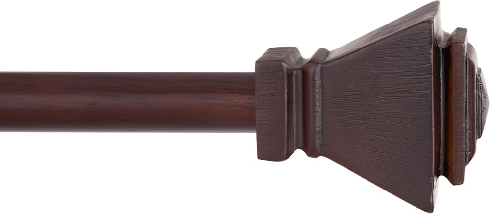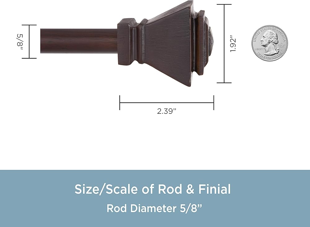 Add a touch of style to your home with the Iverson Standard Decorative Window Curtain Rod by Kenney. The 5/8 inch diameter Iverson curtain rod in espresso brown features matching square finial ends. Use in your kitchen, bedroom, dining room, and living room to hang light to medium weight curtains. The telescoping rod adjusts from 90 inches to 130 inches to fit your window and projects 3 inches from the wall. It is ideal for hanging curtains with pockets, grommets, back tabs, and tab tops, but can also be used with clip rings. Drapery Hardware Set Includes: one telescoping steel curtain rod with decorative finials (2.39" L x 1.92" W x 1.92" H), two mounting brackets, one center support, screws, drywall anchors, and installation instructions.
