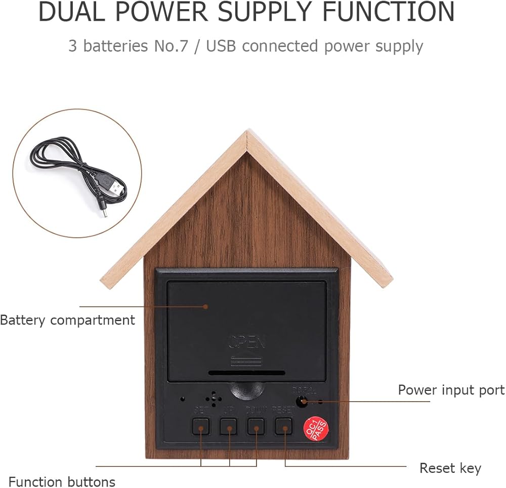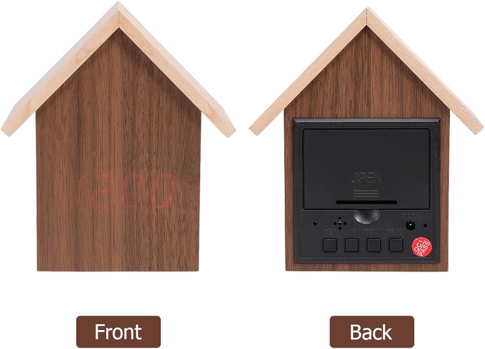 ⏰💭💤【Brighten up Your Day】- Your decorative house wooden alarm clock features a dimmable LED display. The clock also comes equipped with a fully functional alarm, and can display your choice of temperature or time for added convenience.
