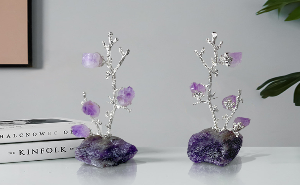 【أحجار الكريستال العلاجية】شجرة كريستال الجمشت مصنوعة من أحجار الكريستال الطبيعية، فهي صغيرة ولطيفة، بسبب طبيعة الأحجار الكريمة، قد تختلف المنحوتات قليلاً في الحجم واللون والشكل.