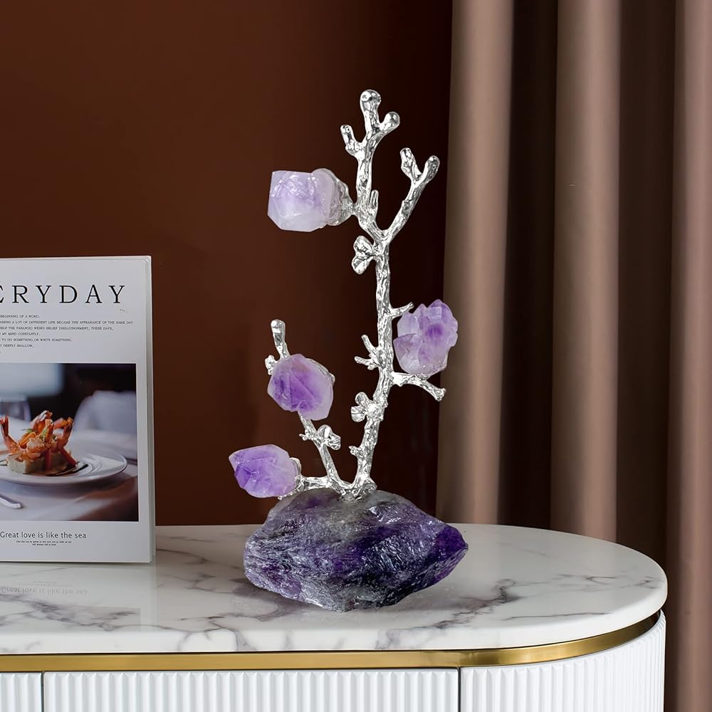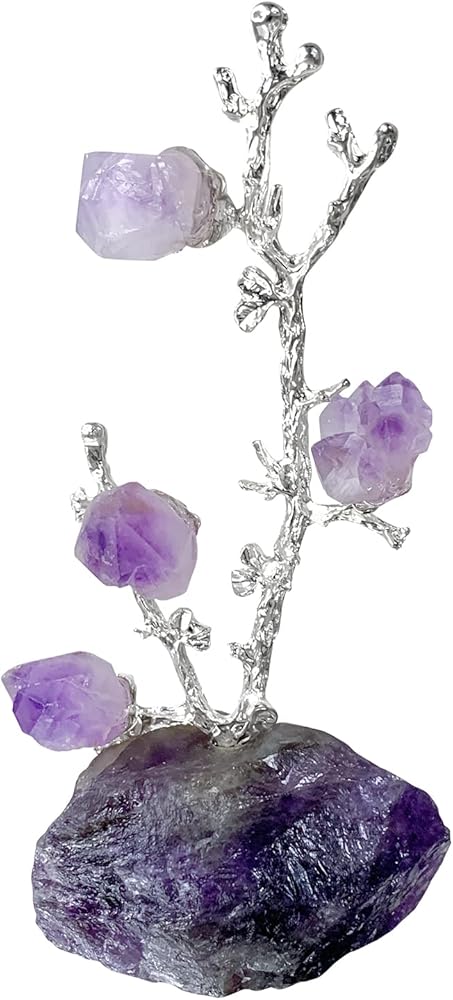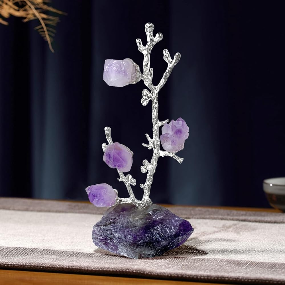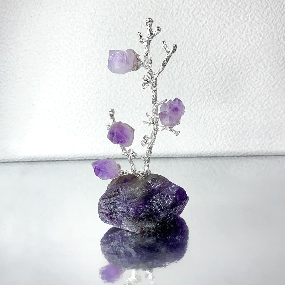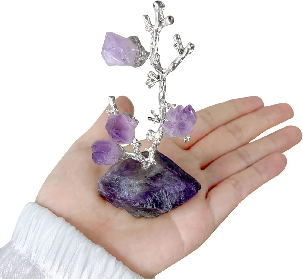 شجرة كريستال الجمشت العلاجية، شجرة زهرة البلورات الطبيعية للطاقة الإيجابية، وأشجار المال فنغ شوي شقرا شجرة الأحجار الكريمة للحياة لديكور مكتب المنزل والمكتب، حظًا سعيدًا (حجم صغير)