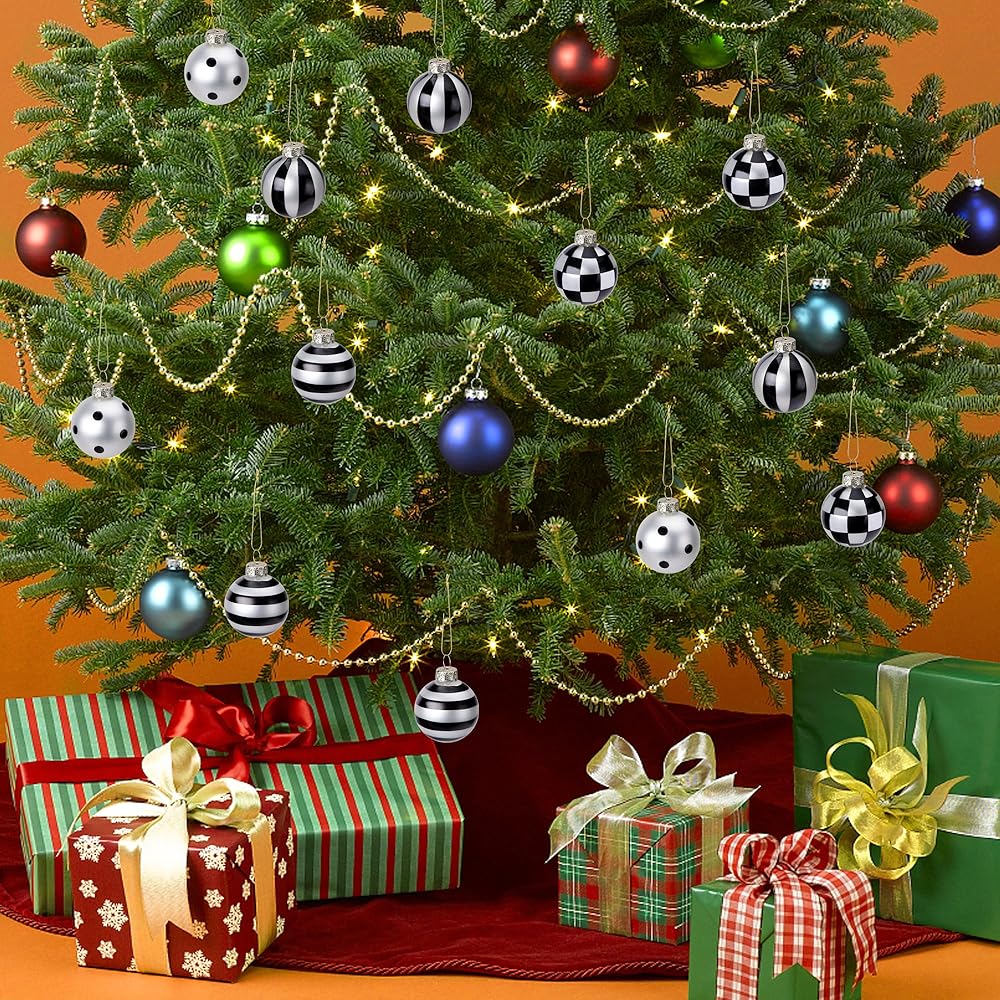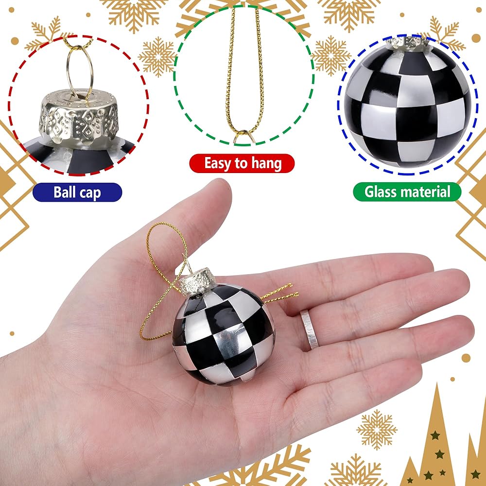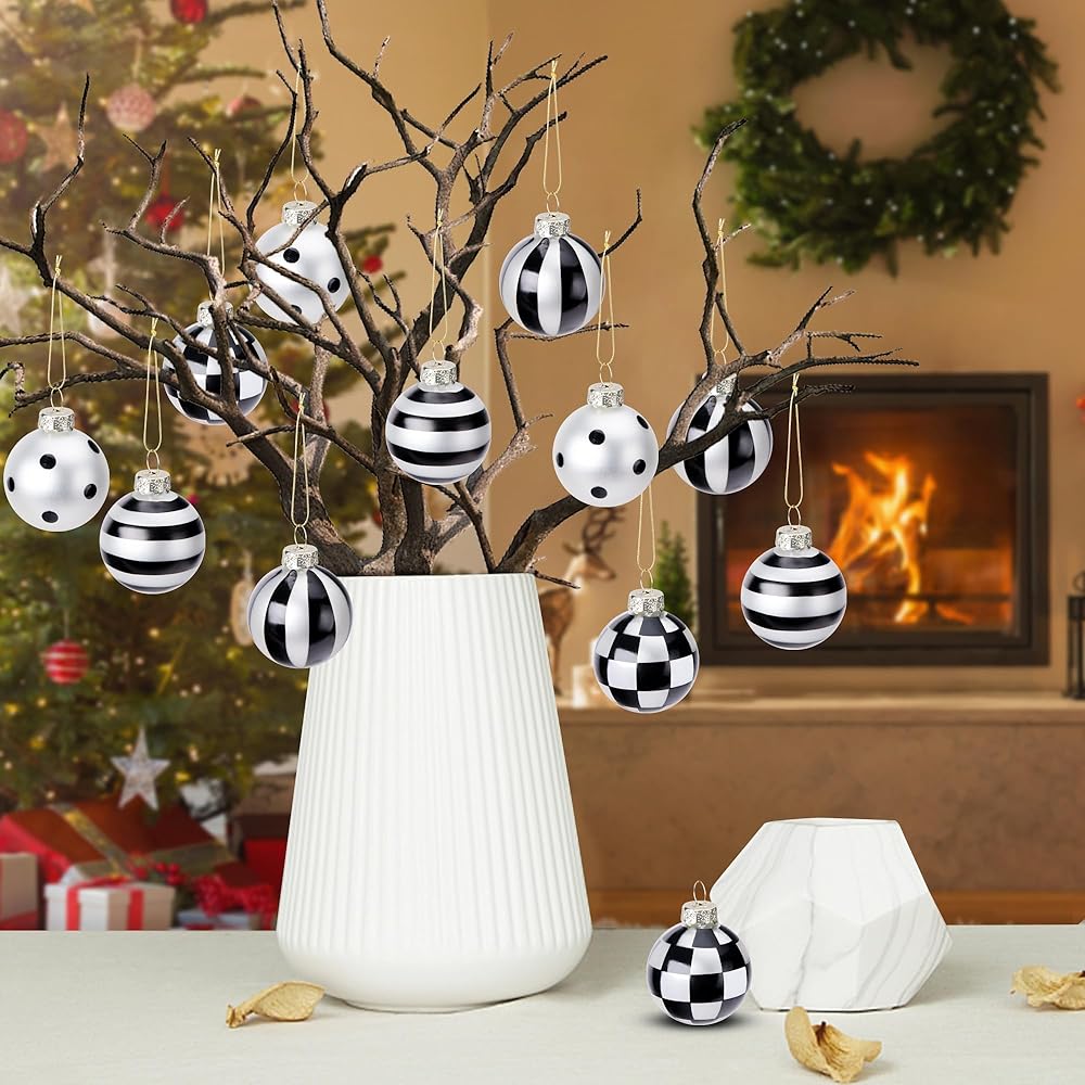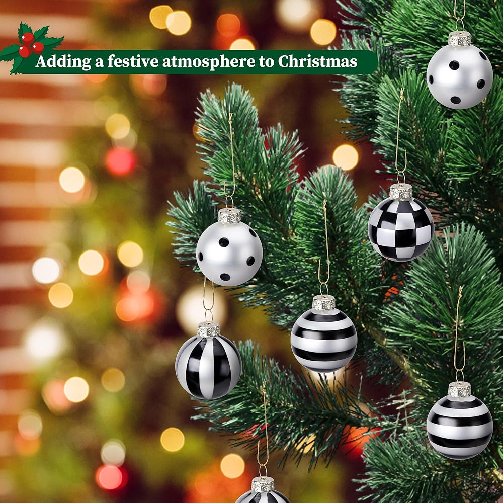(3)You will receive 4 styles of black white glass hanging ball ornaments printed with buffalo plaid, stripes and polka dots to perfectly match your Christmas decorations.