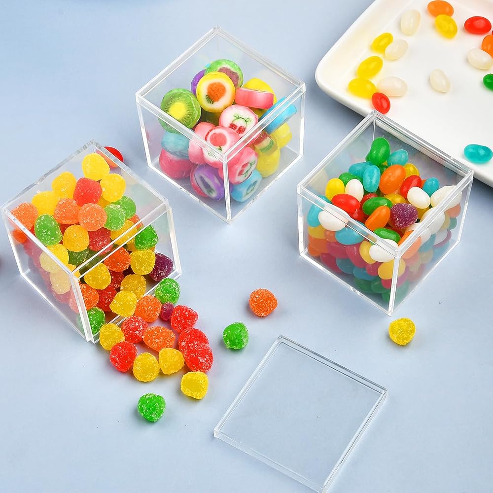 2.36 inch Acrylic Square Cube, 32 Pieces Clear Small Acrylic Storage Box with Lid Mini Plastic Storage Containers Clear Display Box for Candy Pill Tiny Jewelry Beads (6 cm)