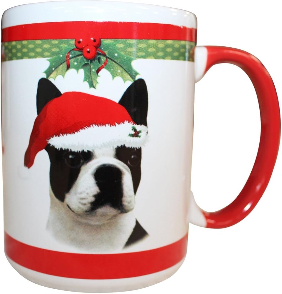 Be Festive and make your mornings easier to face with this unique and fun coffee mug. Mug holds 15 ounces of your favorite beverage. This high resolution Christmas design of your dog is printed on the front with "HO HO HO" on the back and "Good Dog, Woof, Bow Wow" printed on the inner rim.