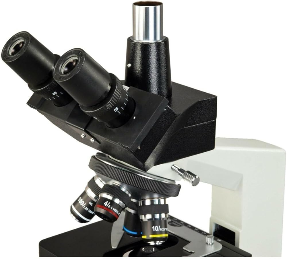 The advanced compound trinocular microscope 40X to 2500X provides a 14MP USB digital imaging system and a LED illumination system. The digital biological microscope features an optical system for simultaneously observing images through eyepieces and an adjustable trinocular port. The 4096x3288 pixels USB digital imaging system that captures still microscope images and live video on computer. The included software compatible with windows, Mac OS and Linux operating system can also be used to make measurements. The LED lamp can be replaced by yourself. The high resolution image in the field of view is crystal clear and will satisfy the demands of professionals. All lenses are made of high quality optical glass. This trinocular microscopy is good for teaching, demonstration, clinical examination and research purpose.