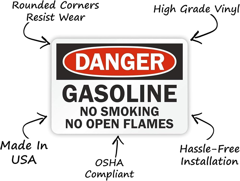 HASSLE-FREE INSTALLATION: With a strong self-adhesive backing, these vinyl signs are easy to install in commercial and industrial settings. Ideal for tanks and storage areas, they provide a crucial caution against the dangers of gasoline.