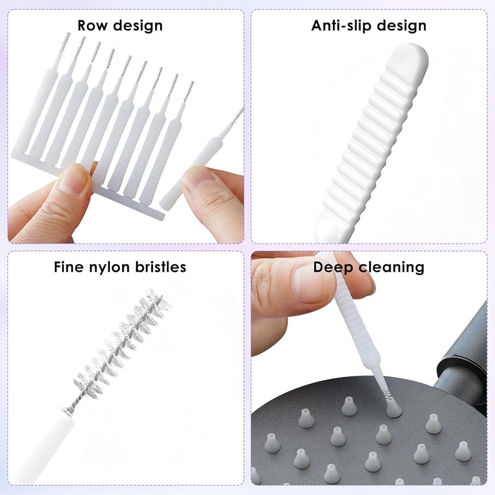 Multi-Cleaning Tools Kit: 8-piece cleaning supplies include 2 colors of 360-degree rotating crevice cleaning brushes, 5 multi-functional extended hard bristle cleaning brushes and 1 row of 10 shower head cleaning brush for small hole, which can be used in combination to flexibly enter small spaces of different sizes for deep cleaning. It is a perfect crevice cleaning tool to meet your various cleaning needs.