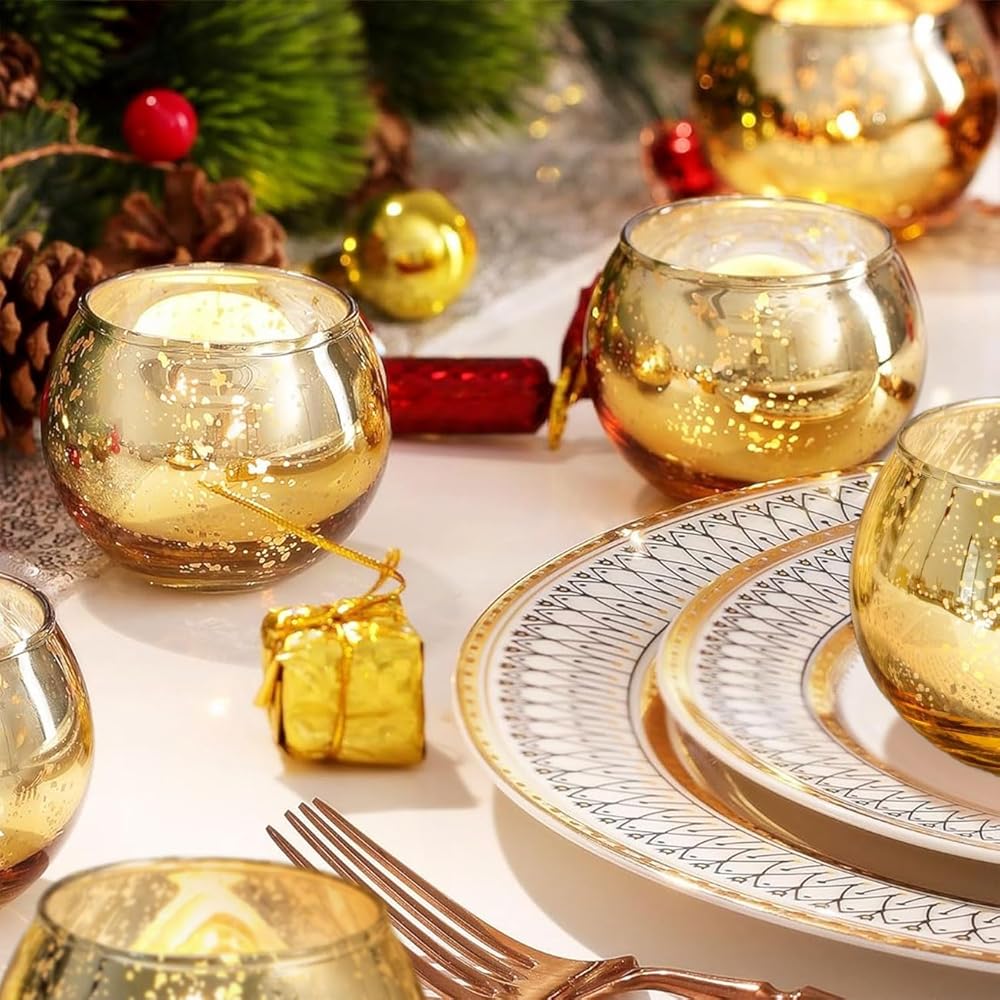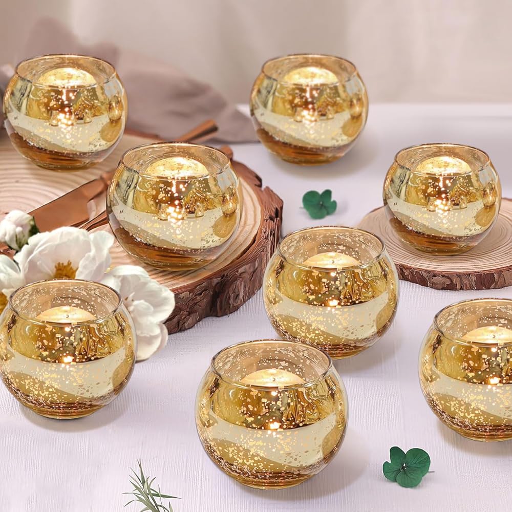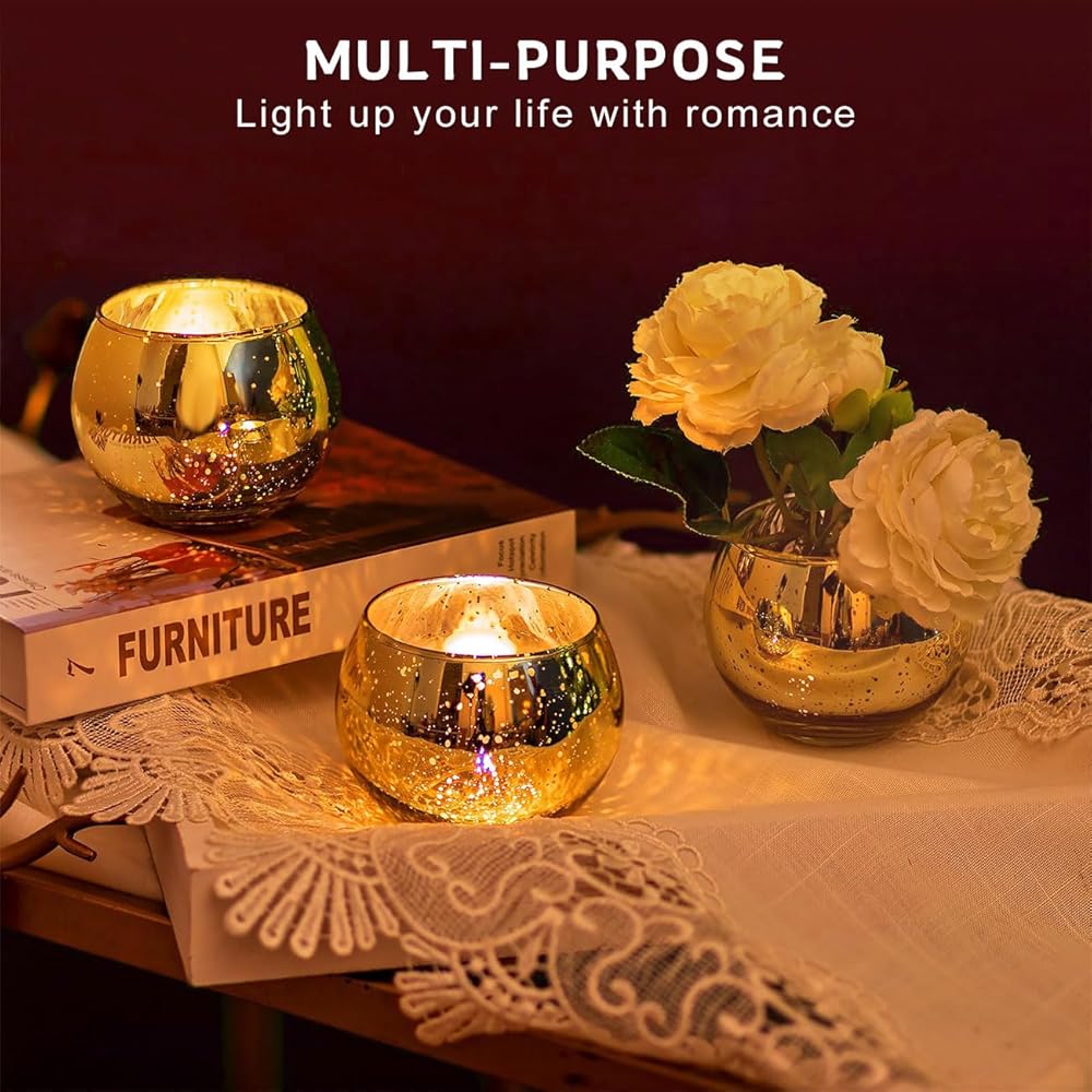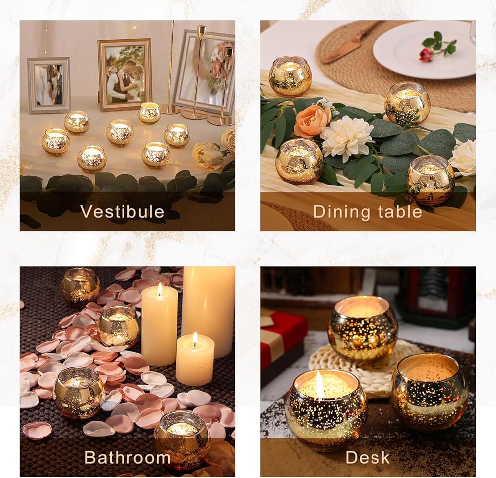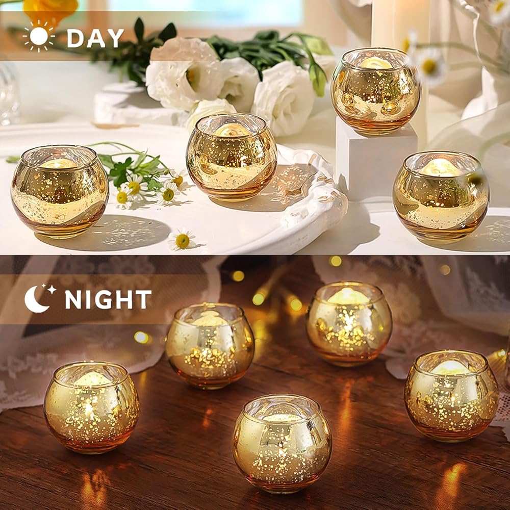 12PCS Assorted Gold Votive Candle Holders Mercury Glass Candle Holder Gold Wedding Centerpieces for Tables Wedding Party Supplies
