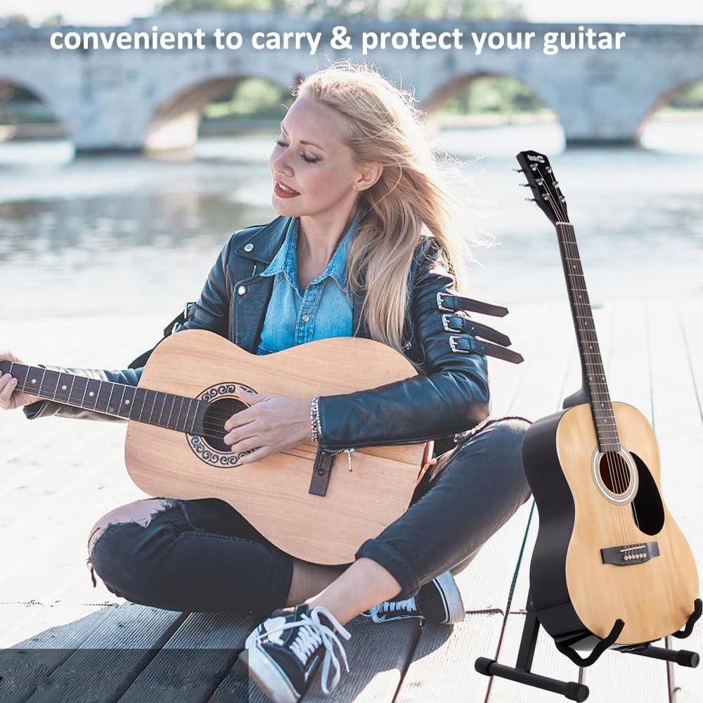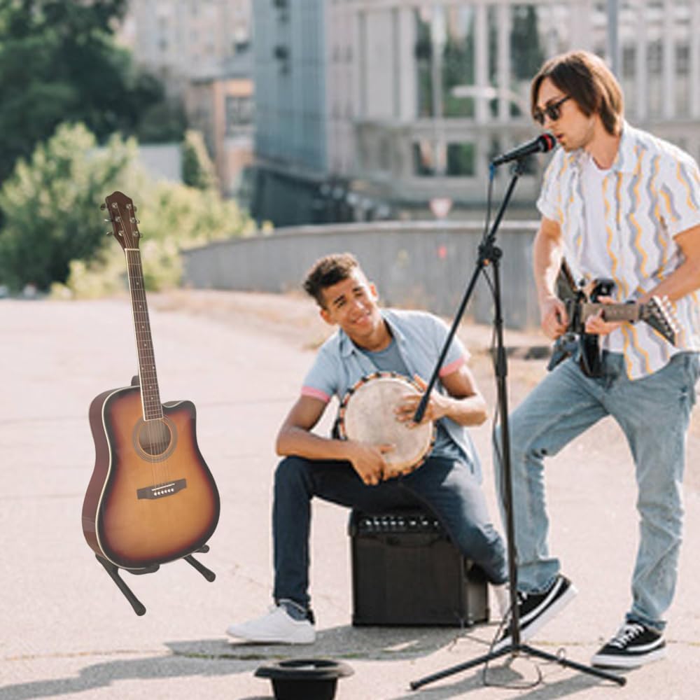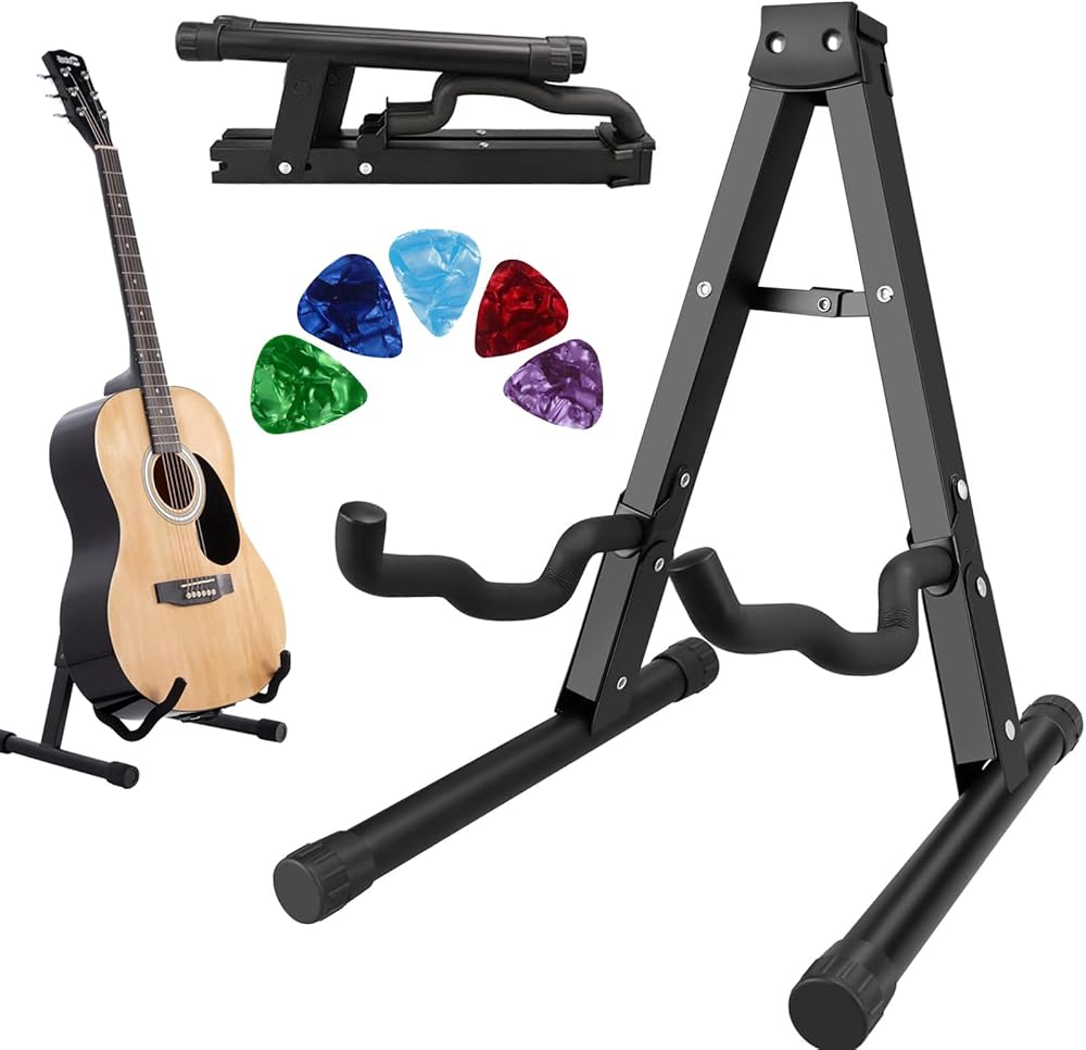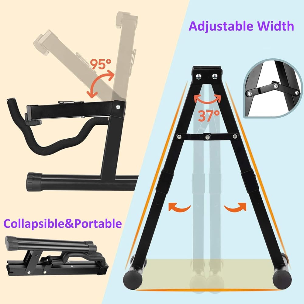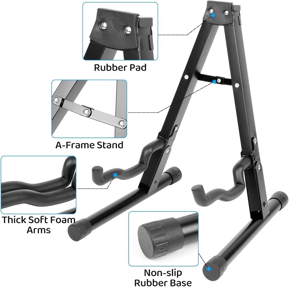 حامل جيتار عالمي، حامل جيتار صوتي قابل للطي على شكل حرف A مع أذرع مطاطية ورغوية غير قابلة للانزلاق، حامل جيتار معدني للجيتار الصوتي/الجيتار الكهربائي/الباس/القيثارة/البانجو/الكمان
