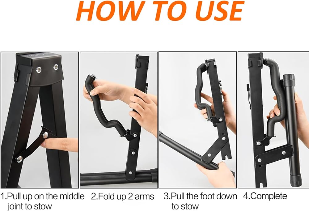 🎁♫سهل الاستخدام♫ حامل الجيتار مصنوع من معدن عالي الجودة، وهو خفيف ومتين. ويمكن حمله في حقيبة الظهر بعد طيه، ويمكن طيه وتخزينه لتوفير مساحة التخزين.